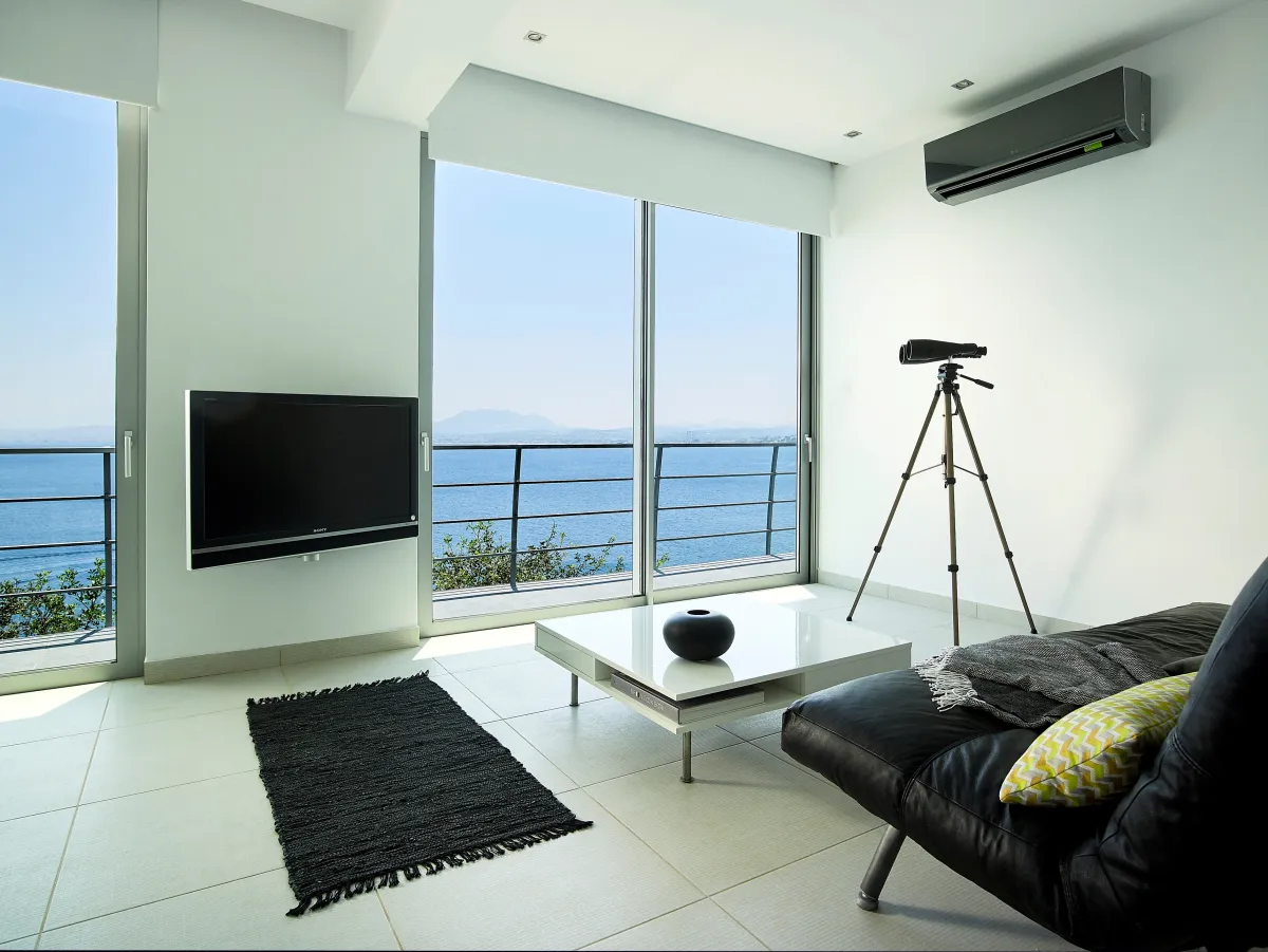 Smell the sea, feel the breeze, hear the ocean, be at ease in this Ocean vistas holiday rental in an open plan 300 m2 interior space on 2 levels, that also includes private gym and an additional apartment for your holiday staff, or extra couple(with extra charge). This impeccably decorated villa on wrap around balconies, floor-to-ceiling windows, floating sun terraces, Infinity Pool and beautiful Ocean Views is the best chance to experience top vacation in the hottest destination of Greece, the island of Crete. Settled in a unique location along the north shoreline with easy access to private beach, the villa caters those desiring the pace and charm of a exclusive private sanctuary, only a short distance away from the idyllic fishing village of Agia Pelagia, 18km west of Heraklion.