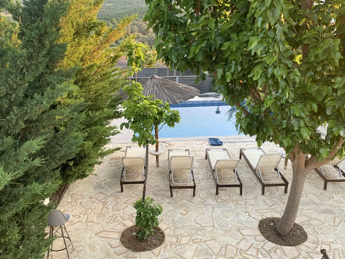 The stone exterior of the holiday villa blends in well with the local environment and the facilities offered include a spacious terrace with sea views, a barbecue, and a large pool, as well as poolside seating, umbrellas, and outdoor dining furniture. Additionally, the villa offers free parking on the premises for guests to utilize.