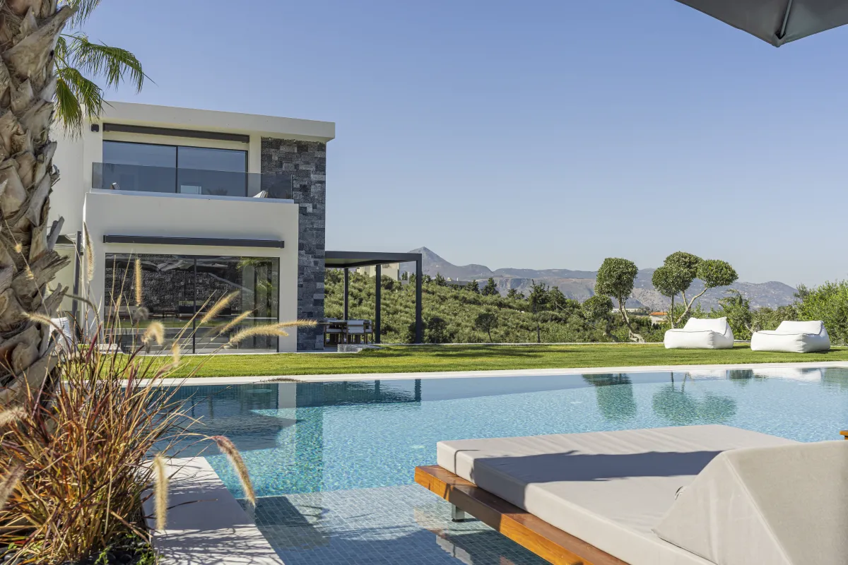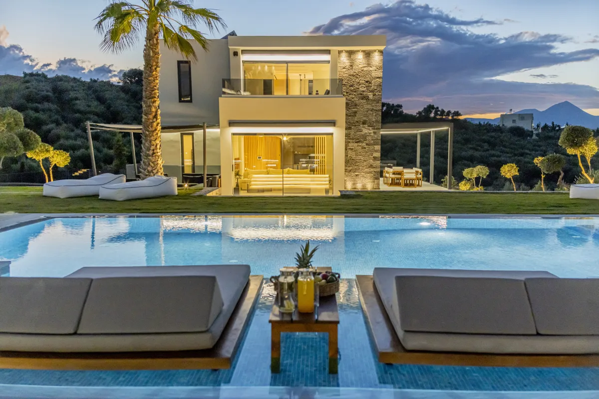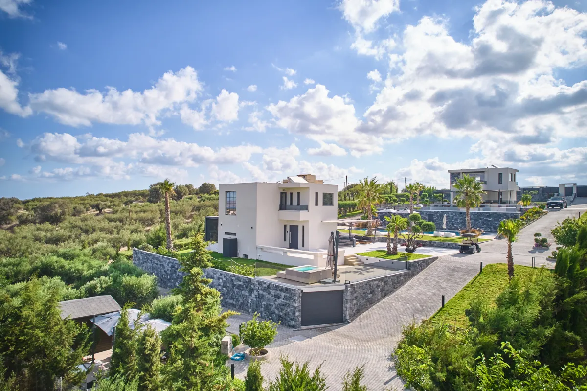 The Geolivia Estate luxury villas are located on the outskirts of Gournes village, near the city of Heraklion on the island of Crete in Greece. This private villa complex, which consists of 2 beautifully decorated units, is close to popular beaches, restaurants, and shops, yet the Geolivia Estate is also perfect for a secluded island retreat.