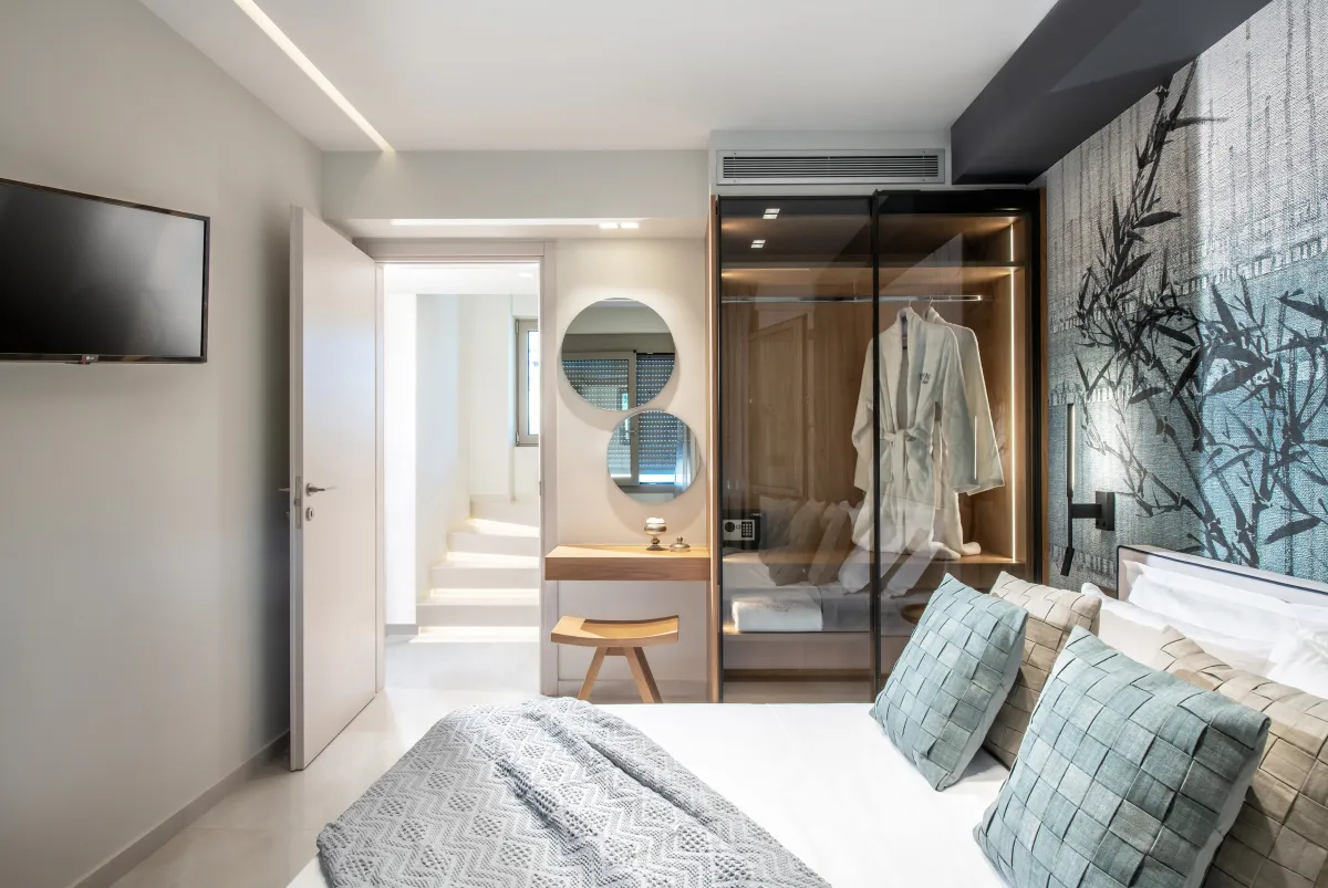 Enjoy sophisticated and stylish accommodation in Heraklion at the brand new KYMO Instyle Villa, with authentic stone exteriors and contemporary interior décor with ocean-blue accents. This beautiful luxury holiday villa for up to 6 guests is a must if vacationing in Crete, Greece.