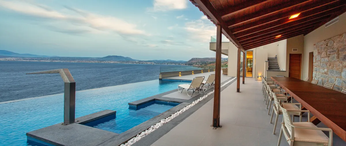 Villa Amphitriti, one of three Rogdia private holiday villa rentals, is an upmarket property situated on the northern coast of Crete, a trendy resort Island in Greece. While this idyllic villa is close to a selection of splendid beaches, restaurants, and supermarkets, the luxurious Villa Amphitriti is also a great place to escape to for a secluded break.