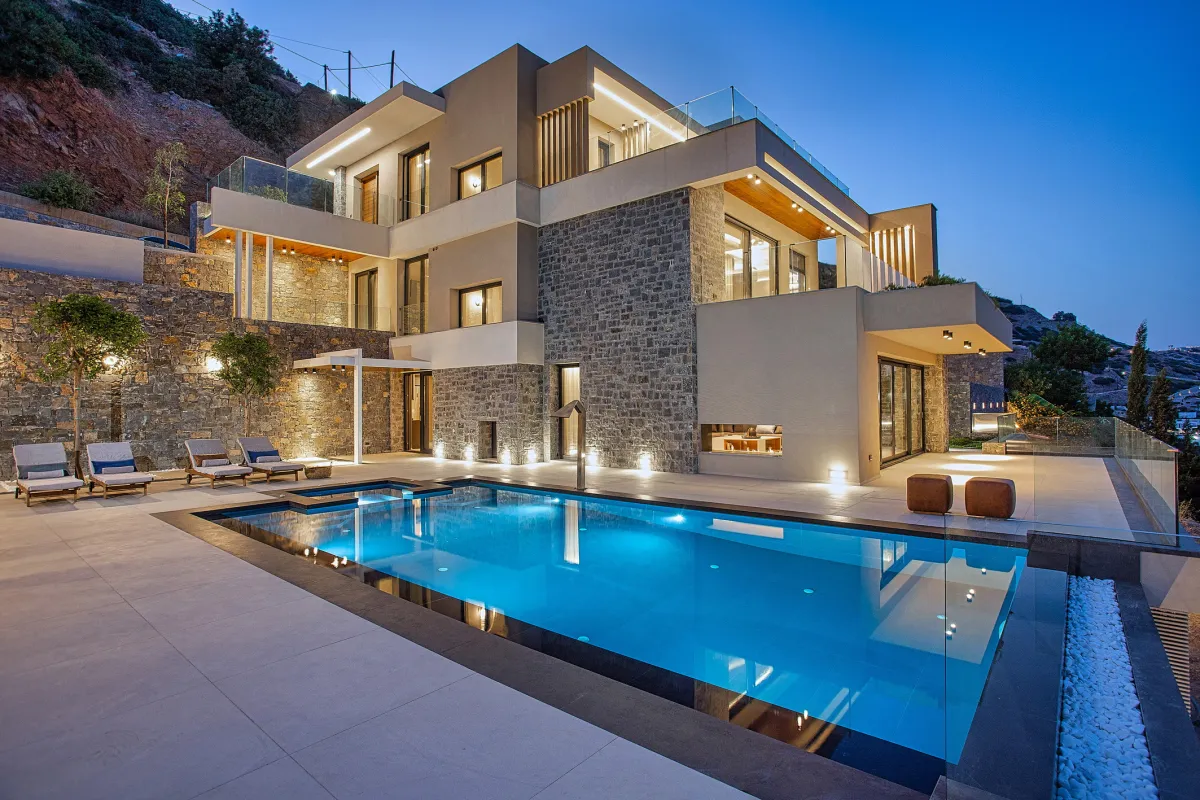 Villa Hyperion, one of three Rogdia Villas holiday rentals, is a trendy private villa situated in the heart of Crete, a popular resort island in Greece. While this idyllic vacation rental is close to a few wonderful beaches, restaurants, and supermarkets, the luxurious Villa Hyperion is also a great retreat for a secluded getaway.