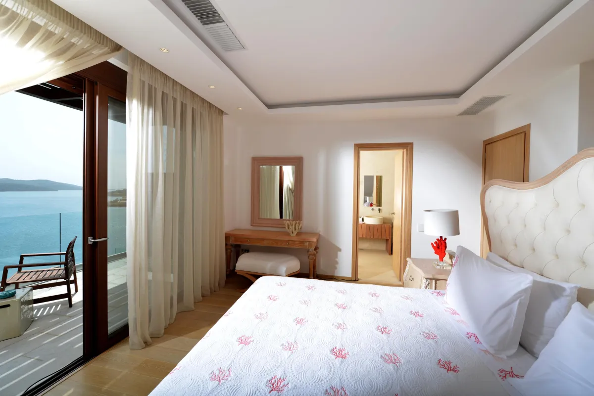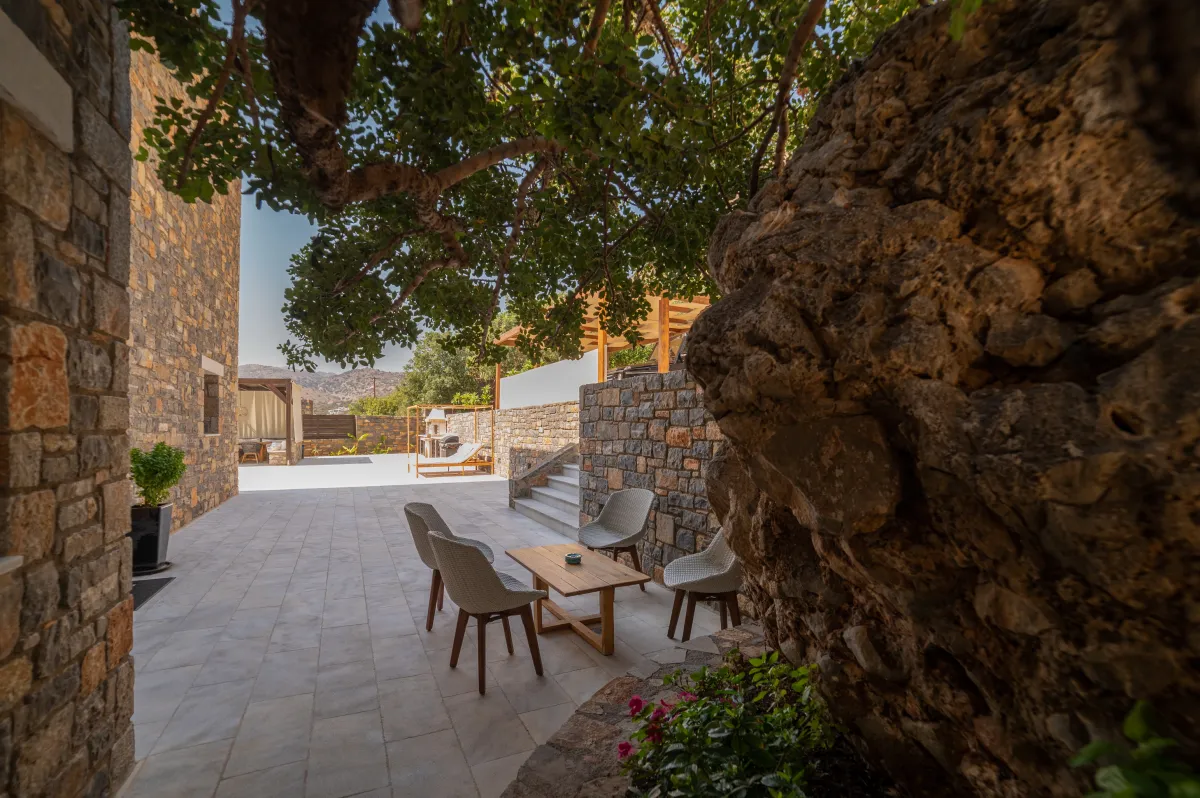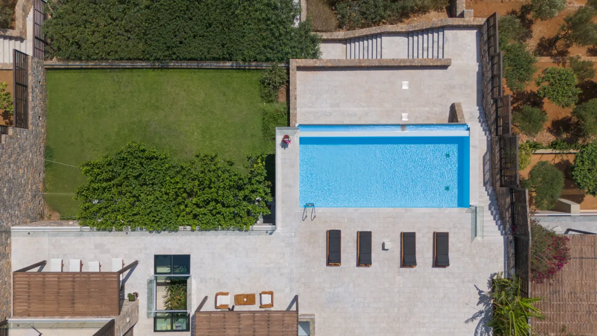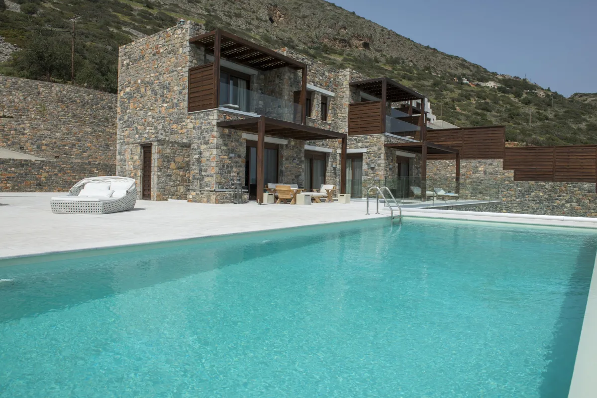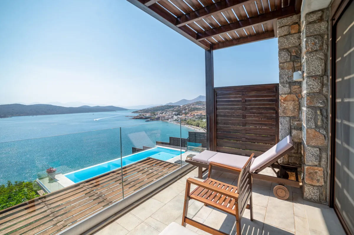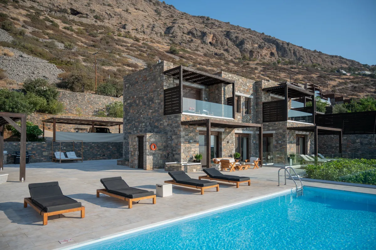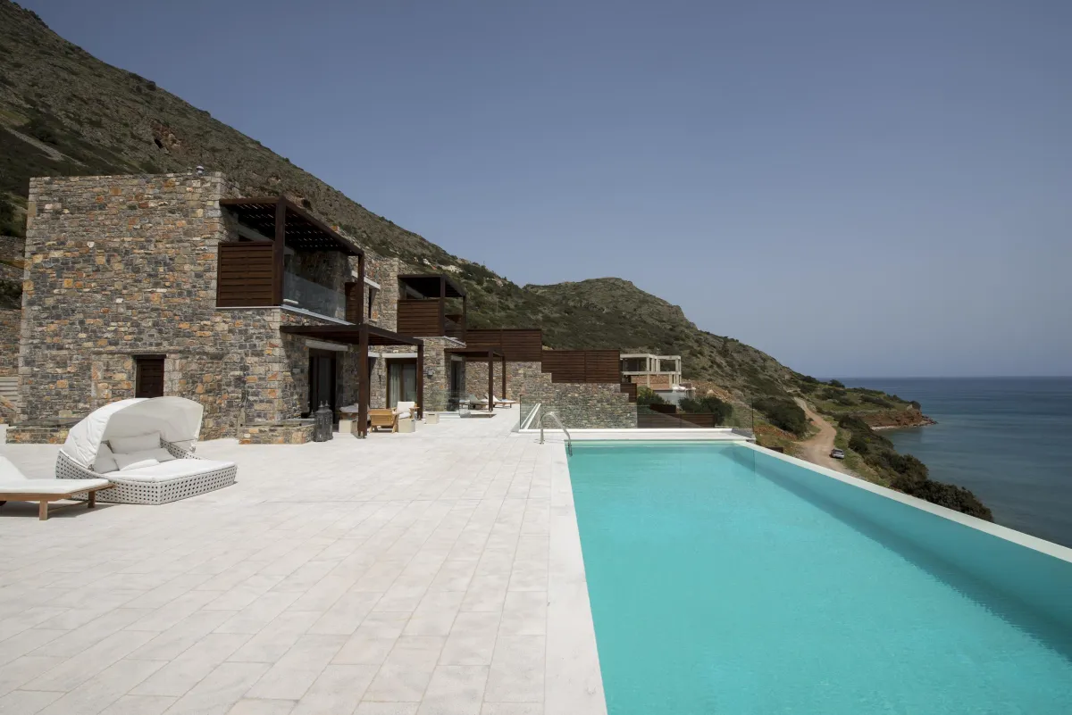 Extravagant eco-chic holiday villa to rent for your best holidays ever, with Ocean Views and private beach, featuring an architectural jewel, overlooking the historical Spinalonga and nearby Elounda, Crete's top resort for luxury-loving celebrities.