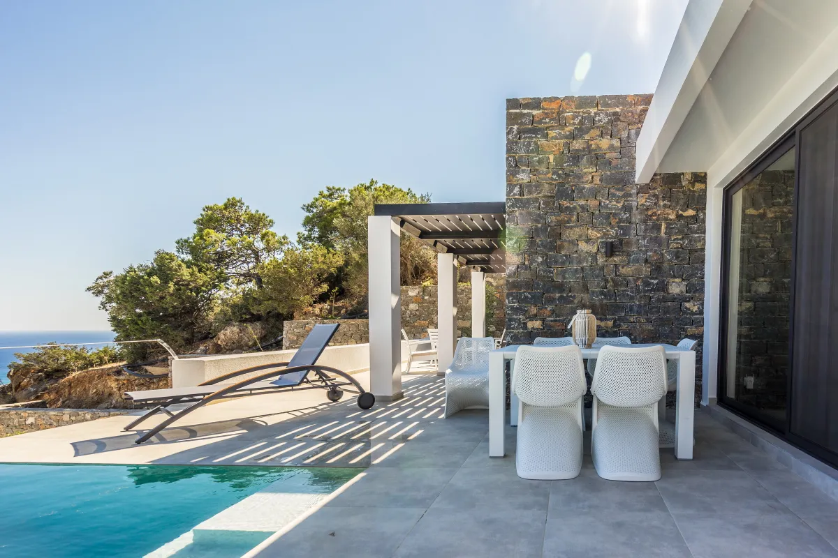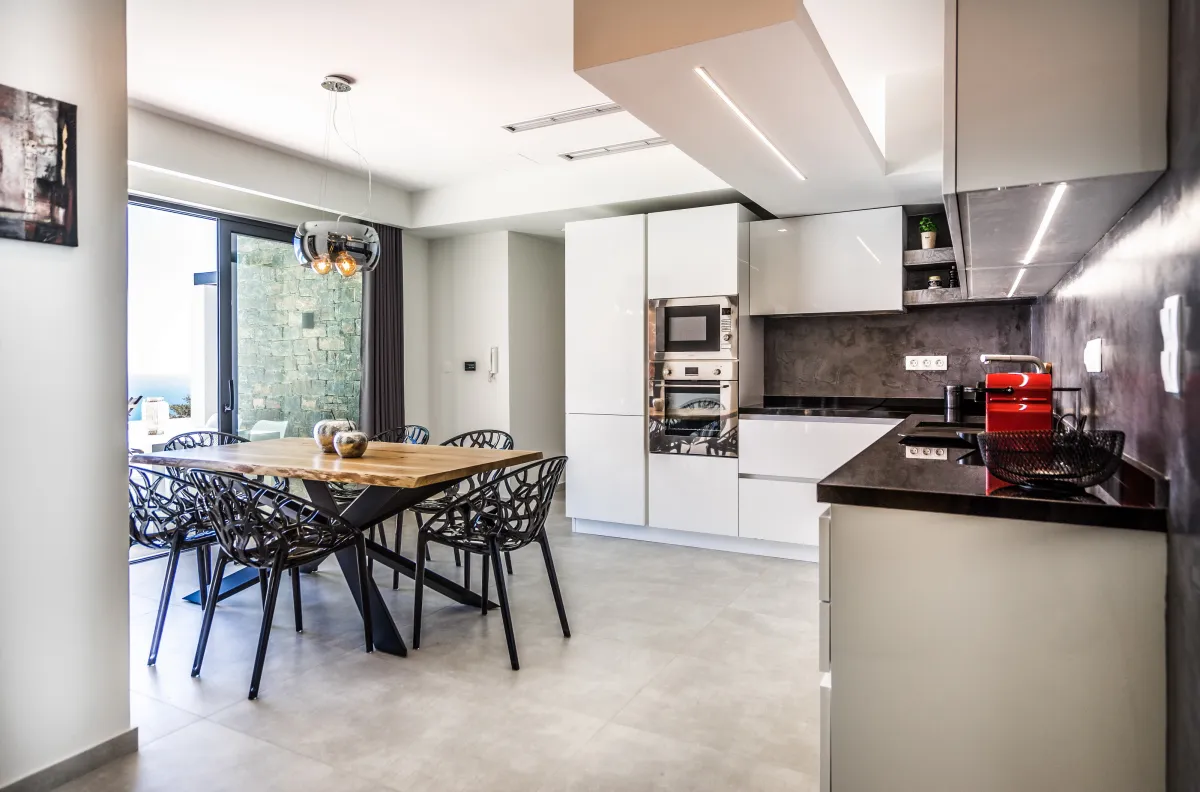Villa Daniela is a luxurious up-scale holiday villa in the stunning Cretan location of Koutsounari near Ierapetra, providing soul-stirring view towards the South Mediterranean sea. It is ideal for settling into the comfortable indoor and outdoor dining area and lounge, preparing dinners in its modern kitchen and absorbing sights, natural sounds and quality of life. Being located in a calm location overlooking the south coastline, it doesn’t get any better for beach lovers and nature lovers. There are 3 bedrooms to sleep up to 6 guests that share the same sunny, inviting appeal as the living room, while a shining kitchen comes totally equipped with modern appliances. The multi-level external spaces enjoy a southern exposure to the bay featuring lounging and dining areas with an alluring private pool and a fantastic waterfall that creates an unparalleled zen atmosphere for the best star gazing. A shaded outdoor personal fitness area from where you feel the relieving cooling touch of the fresh sea breeze is a surprising feature. For a fun-filled family vacation or warm-weather honeymoon, Villa Daniela offers a postcard-perfect scenery and a wealth of activities, whereas a guest you can make the most of the provided facilities to enjoy unforgettable moments during your vacation in Crete.