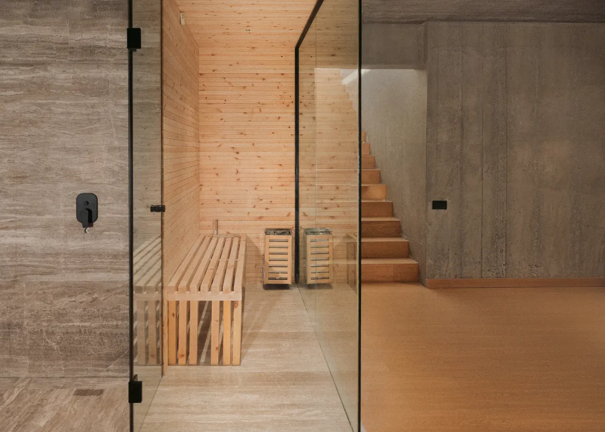 In the lower ground floor of this villa, guests can enjoy a living room and a serene sauna. A second living room is located on the ground floor, featuring great lighting, comfortable seating, a large couch, a 45-inch TV (HDTV) and air-conditioning. The elegantly furnished dining area seats all guests and is stylishly decorated in natural tones. Elounda Gulf Sunrise offers a fully equipped kitchen area with facilities including an oven, dishwasher, freezer, fridge, toaster, microwave, Nespresso coffee machine, and capsules.