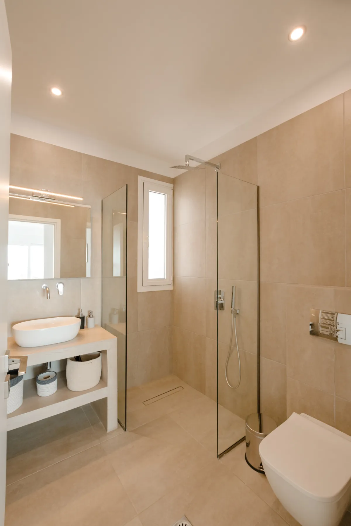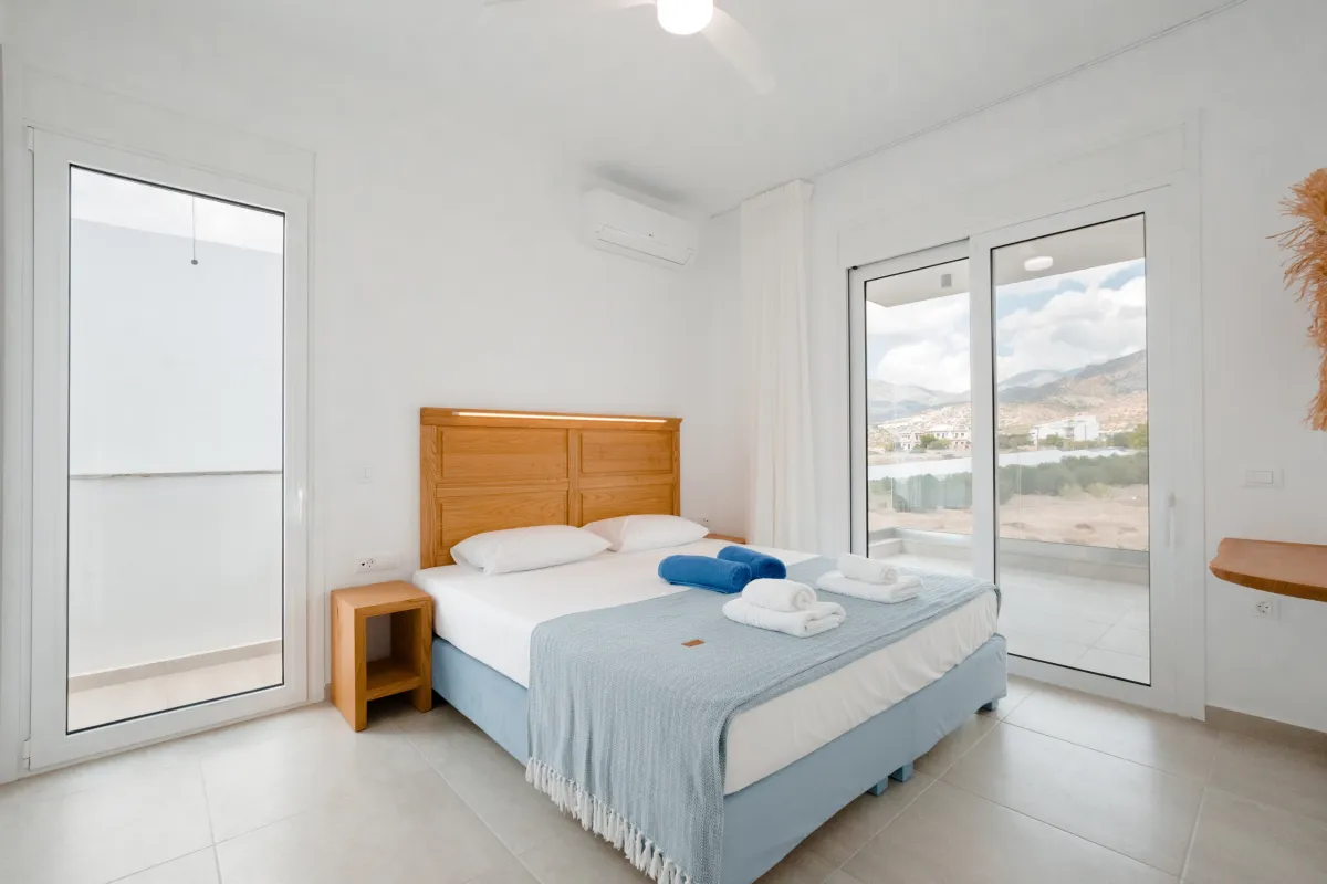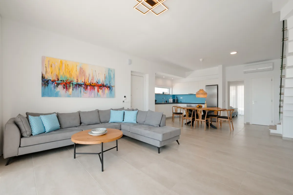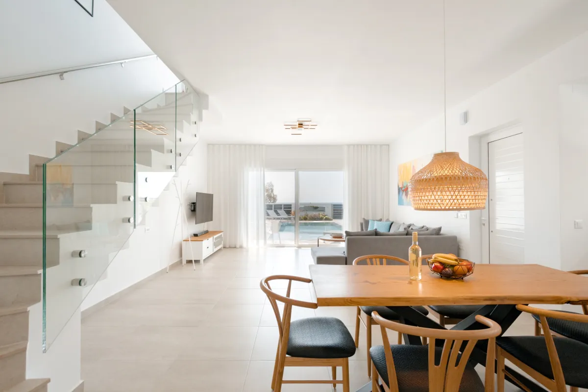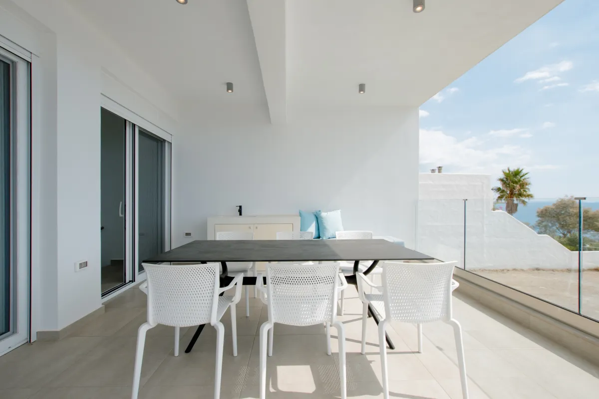 The Villa Marina Hills sleeps 6 guests comfortably in 3 light and airy bedrooms with contemporary décor and great views. The first bedroom features a king-size bed, air-conditioning, a fan, a balcony, and an ensuite bathroom. The second bedroom has a king-size bed, air-conditioning, a fan, and a balcony. The third bedroom has a king-sixed bed as well, aircoditioning, a fan, and a balcony. There is a second bathroom on the first floor and a guest WC on the ground floor as well. Linens, towels, and toiletries are provided.