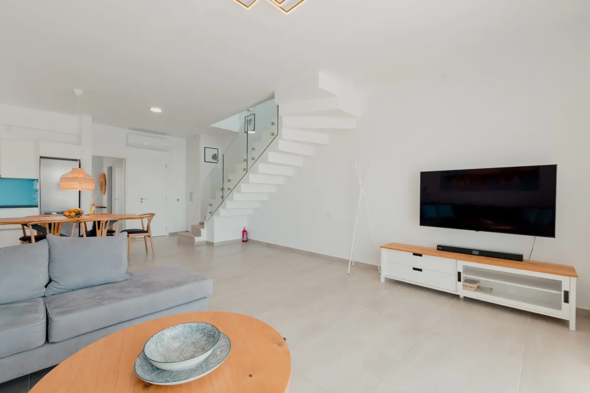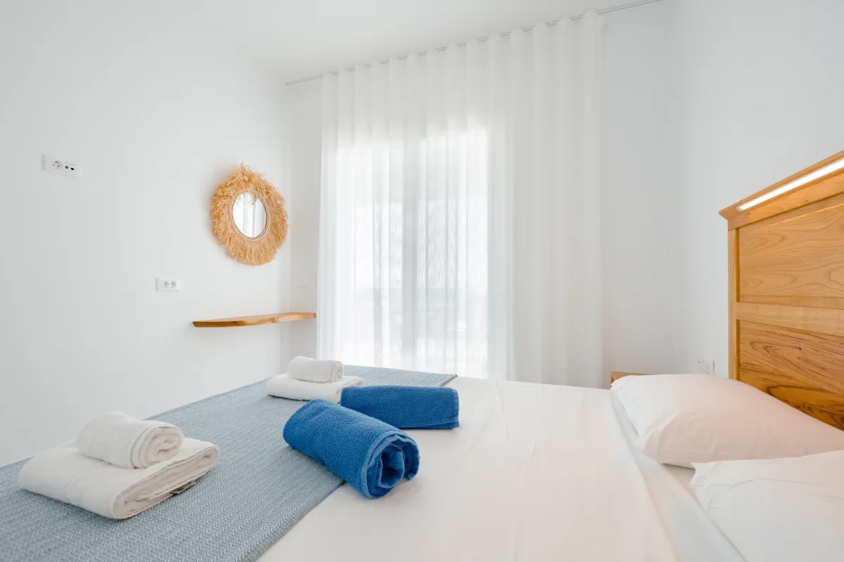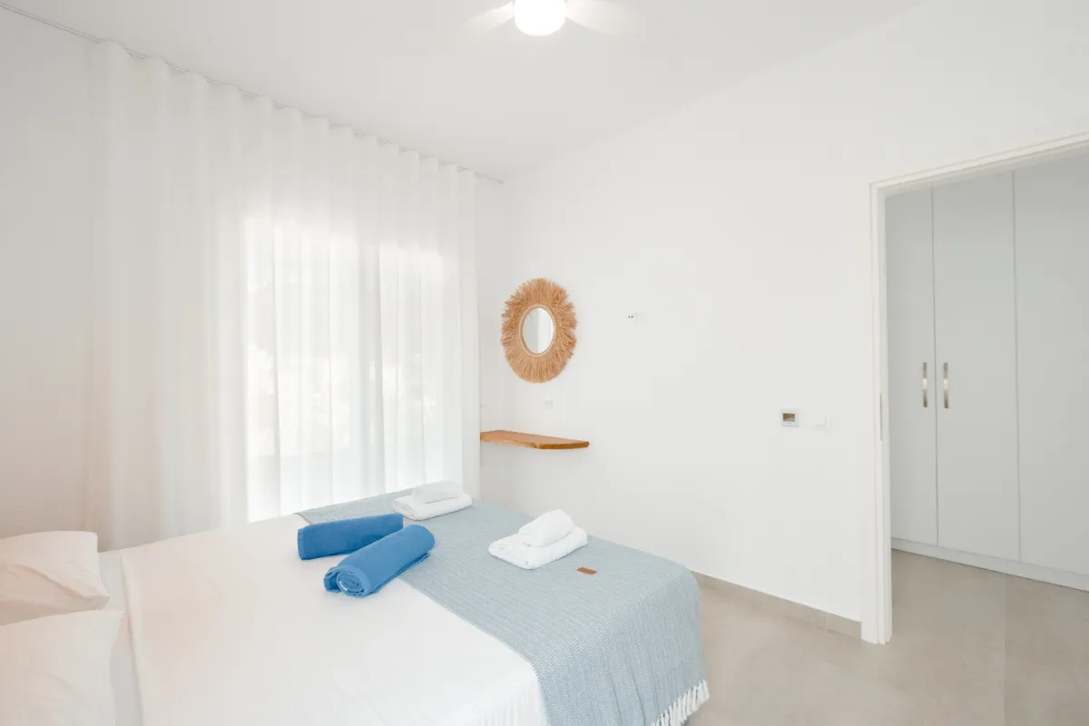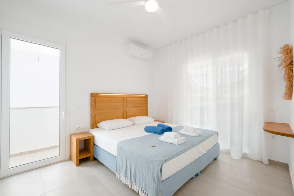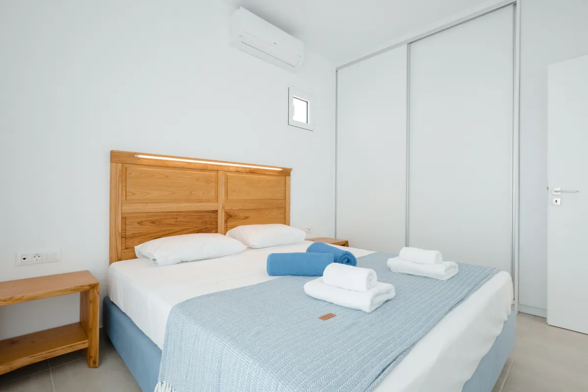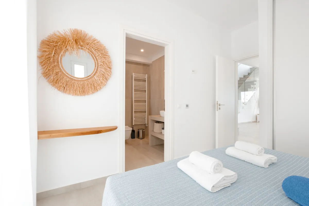 The Villa Marina Hills sleeps 6 guests comfortably in 3 light and airy bedrooms with contemporary décor and great views. The first bedroom features a king-size bed, air-conditioning, a fan, a balcony, and an ensuite bathroom. The second bedroom has a king-size bed, air-conditioning, a fan, and a balcony. The third bedroom has a king-sixed bed as well, aircoditioning, a fan, and a balcony. There is a second bathroom on the first floor and a guest WC on the ground floor as well. Linens, towels, and toiletries are provided.