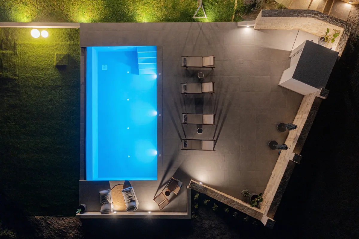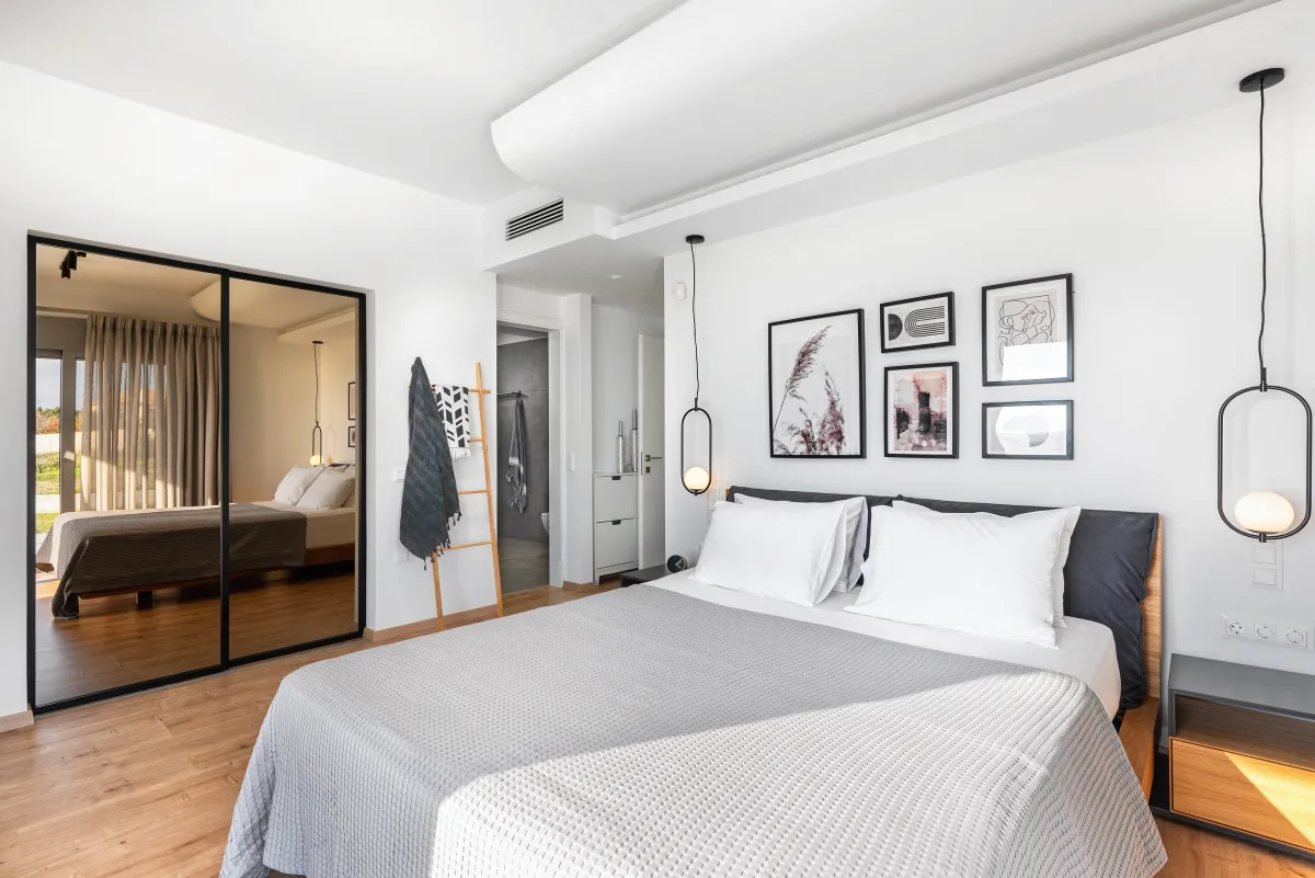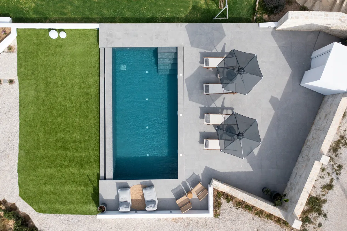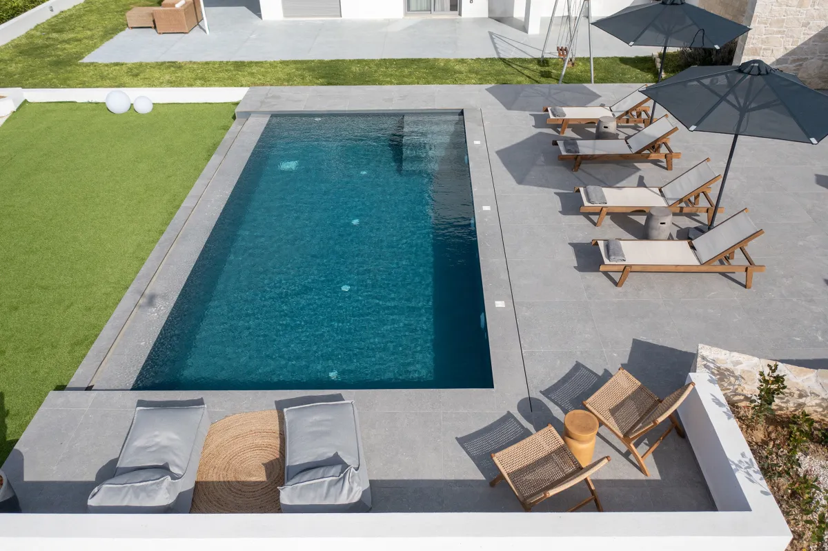 The modern design and spacious, comfortable layout of Nouvelle Villa can accommodate 6 guests in its 3 stylish bedrooms, 2 double and 1 twin, located on the ground floor.
