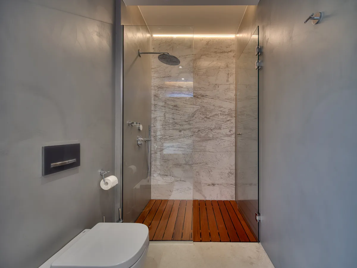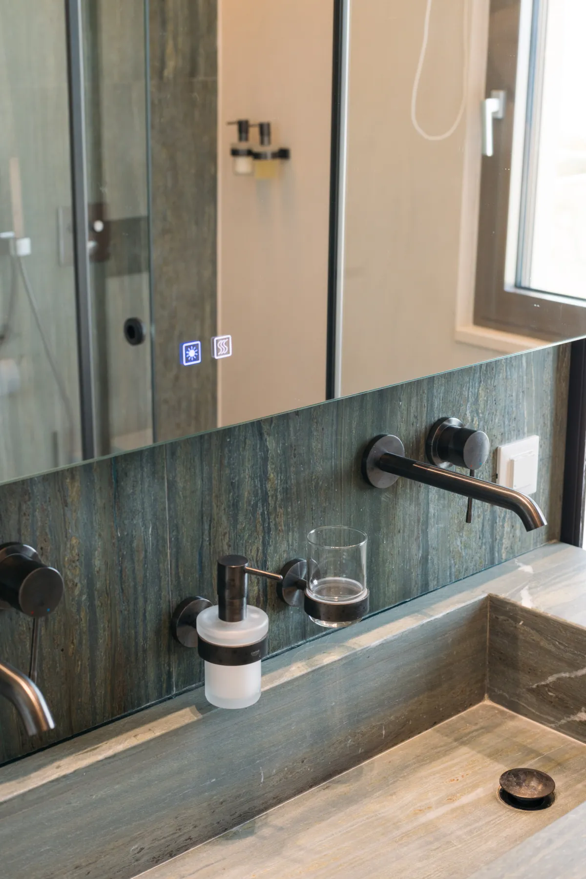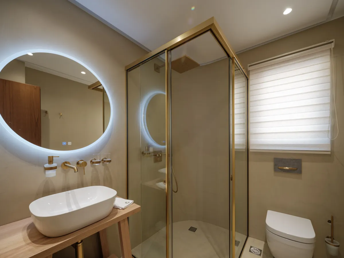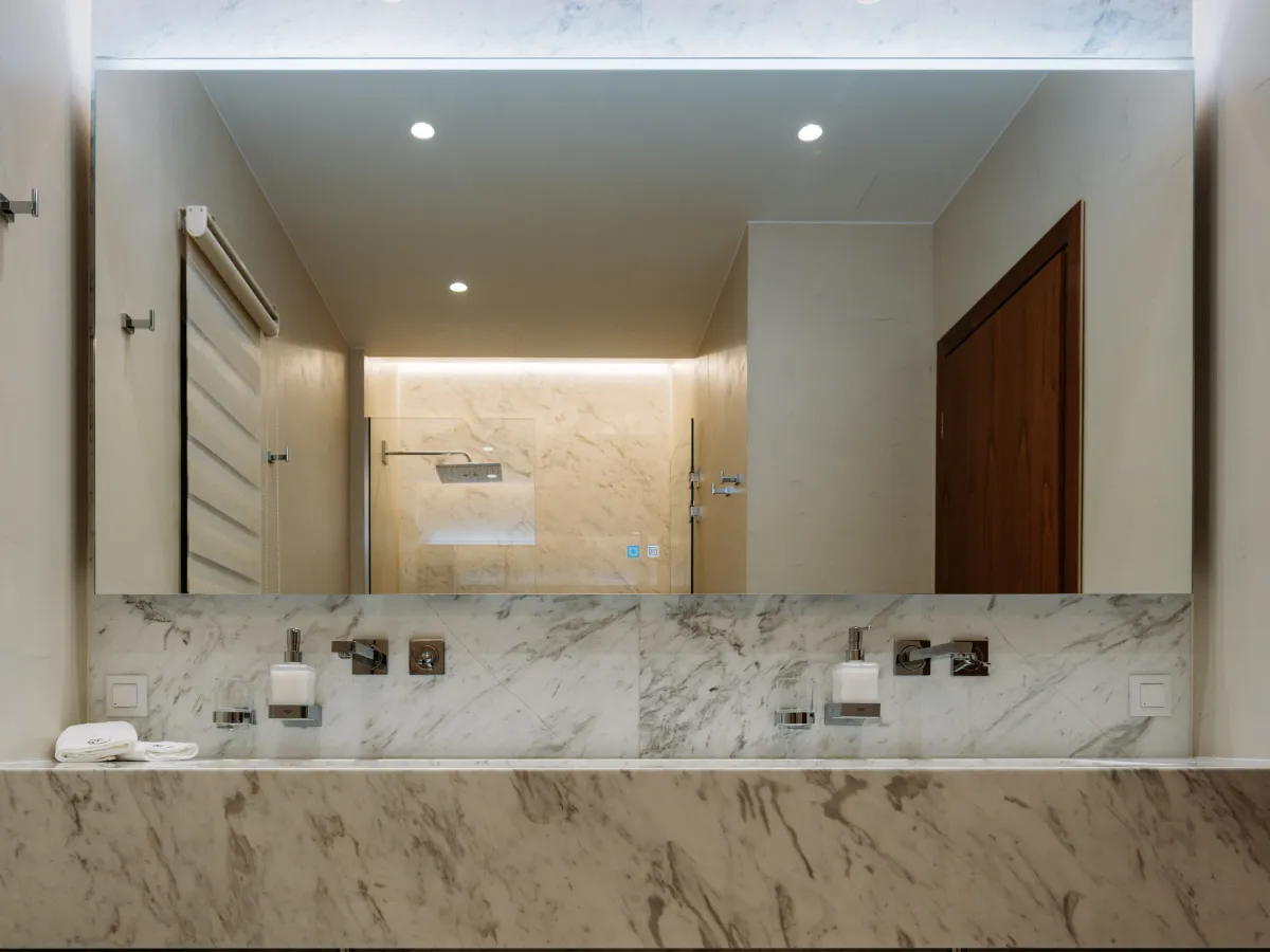 Unwind in the living rooms, furnished with plush recliners featuring electric controls for personalized comfort. Smart air conditioning and underfloor heating ensure a comfortable atmosphere year-round, while high-speed Wi-Fi and smart TVs in every room cater to your entertainment and connectivity needs.