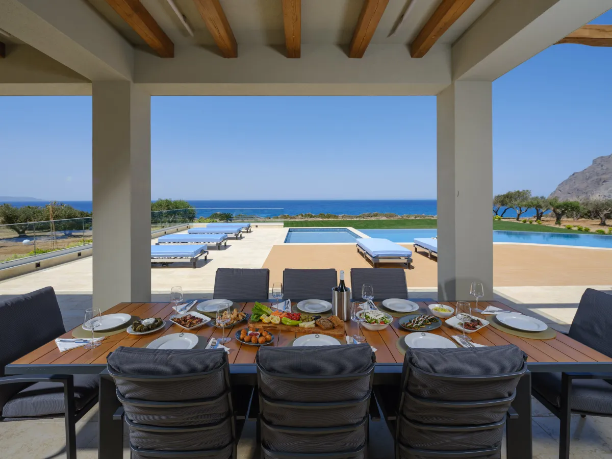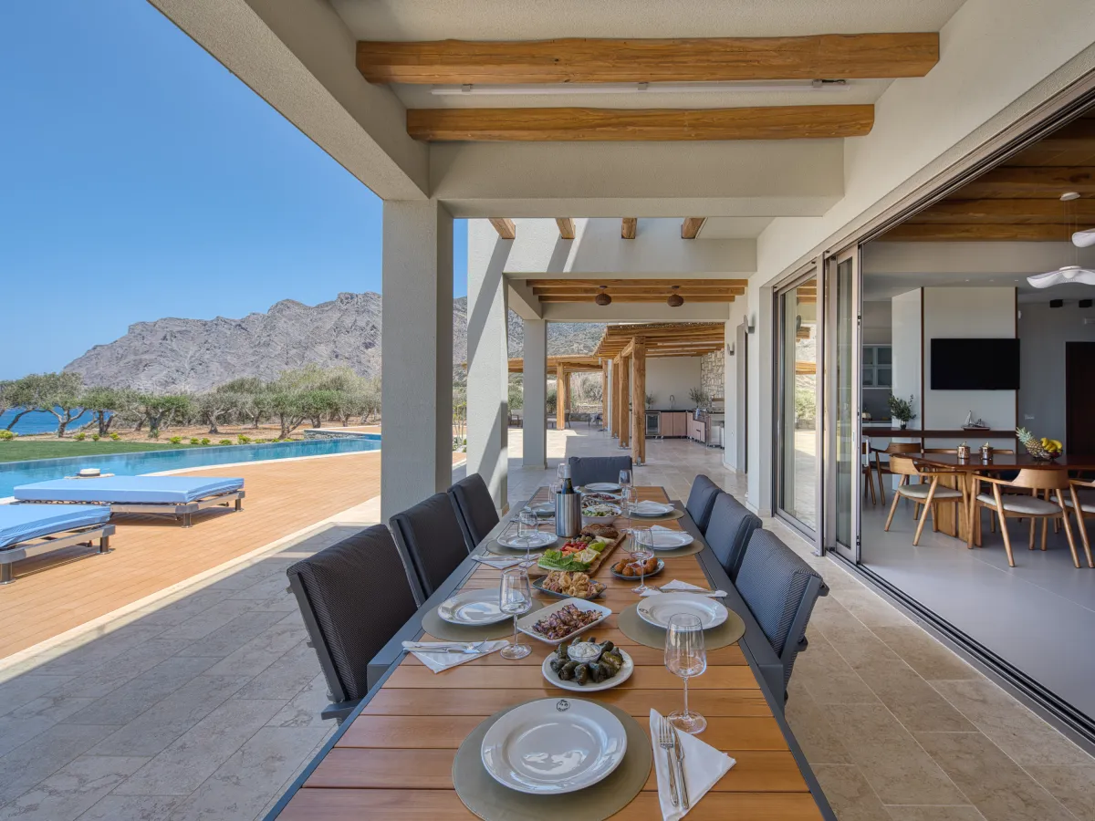 Discover the unparalleled luxury of Villa Paradiso, a secluded retreat nestled within 6,000 m² of private land, complete with a serene olive grove, merely 100m from the nearest beach. Offering stunning views of the dramatic Cretan coastline and the charming village of Linares, this exclusive Mediterranean escape is a feast for the senses.