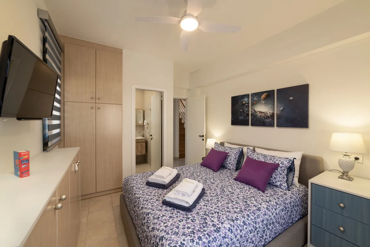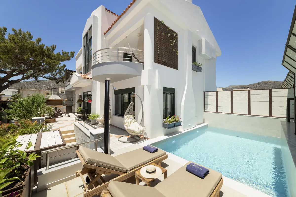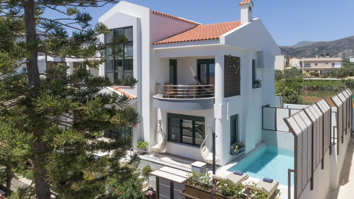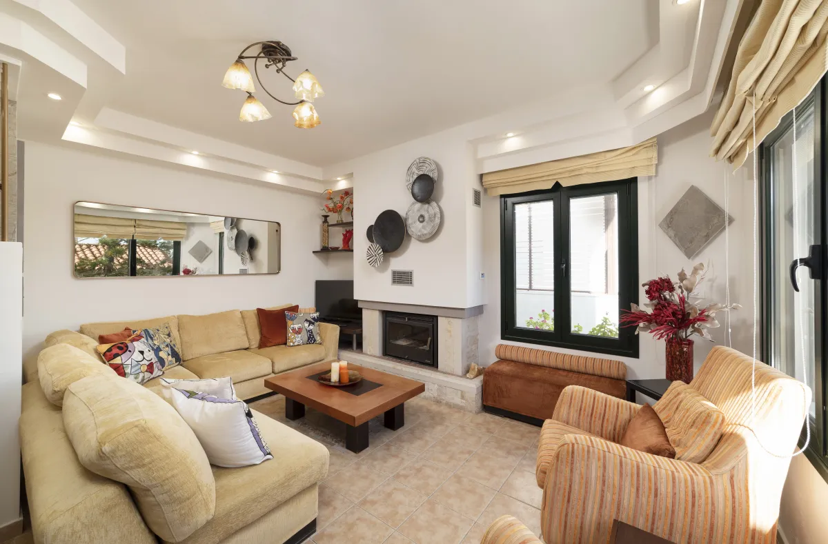 Mimoza Villa is a self-catering vacation home suited to a family gathering with 5 bedrooms and a garden with mature tall arokaria and mimoza trees and a beautiful beach only 4 minutes away, in a non-touristy area of southeast Crete, where popular activities include hiking, swimming, and splurging in local tastes. In Mimoza Villa, you can stay in comfort with peace and quiet ,just a few minutes from the beach, in Lassithi, southeast Crete, which is full of hidden treasures to reward regular return visitors. Mimoza Villa is an air-conditioned vacation home consisted of 2 living rooms with a fireplace, a modern kitchen, 4 private bedrooms with en-suite bathrooms, as well as a loft bedroom and a ground floor patio, plus 3 large balconies with hammocks on the first floor. Wide windows bring views and natural light into key areas in the villa. At Mimoza Villa, you will appreciate the natural shadows created by the many large trees and beds of your private garden, ideal to catch up on some reading and sip Cretan herbal tea underneath after all your sea activities and sightseeing is done.