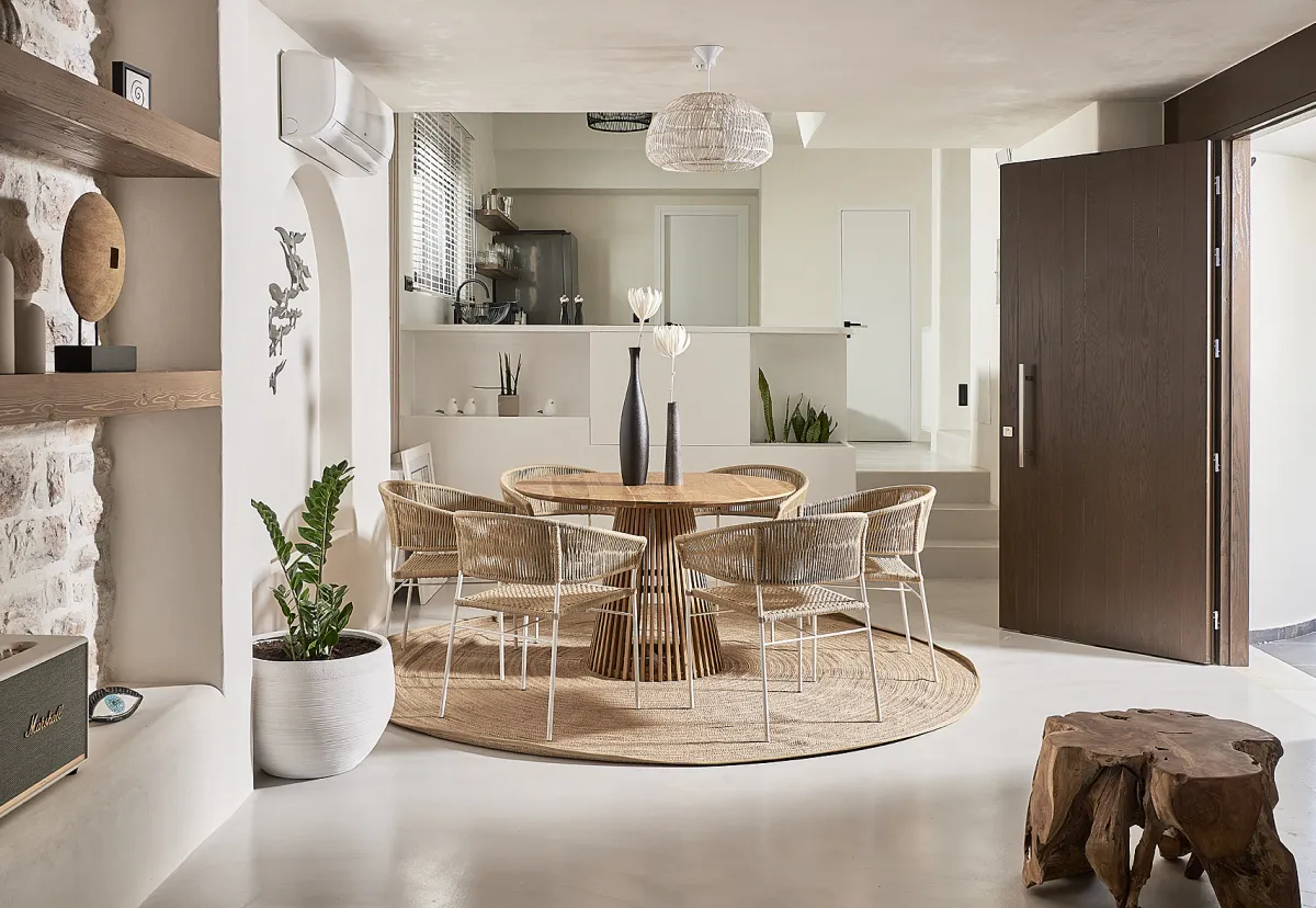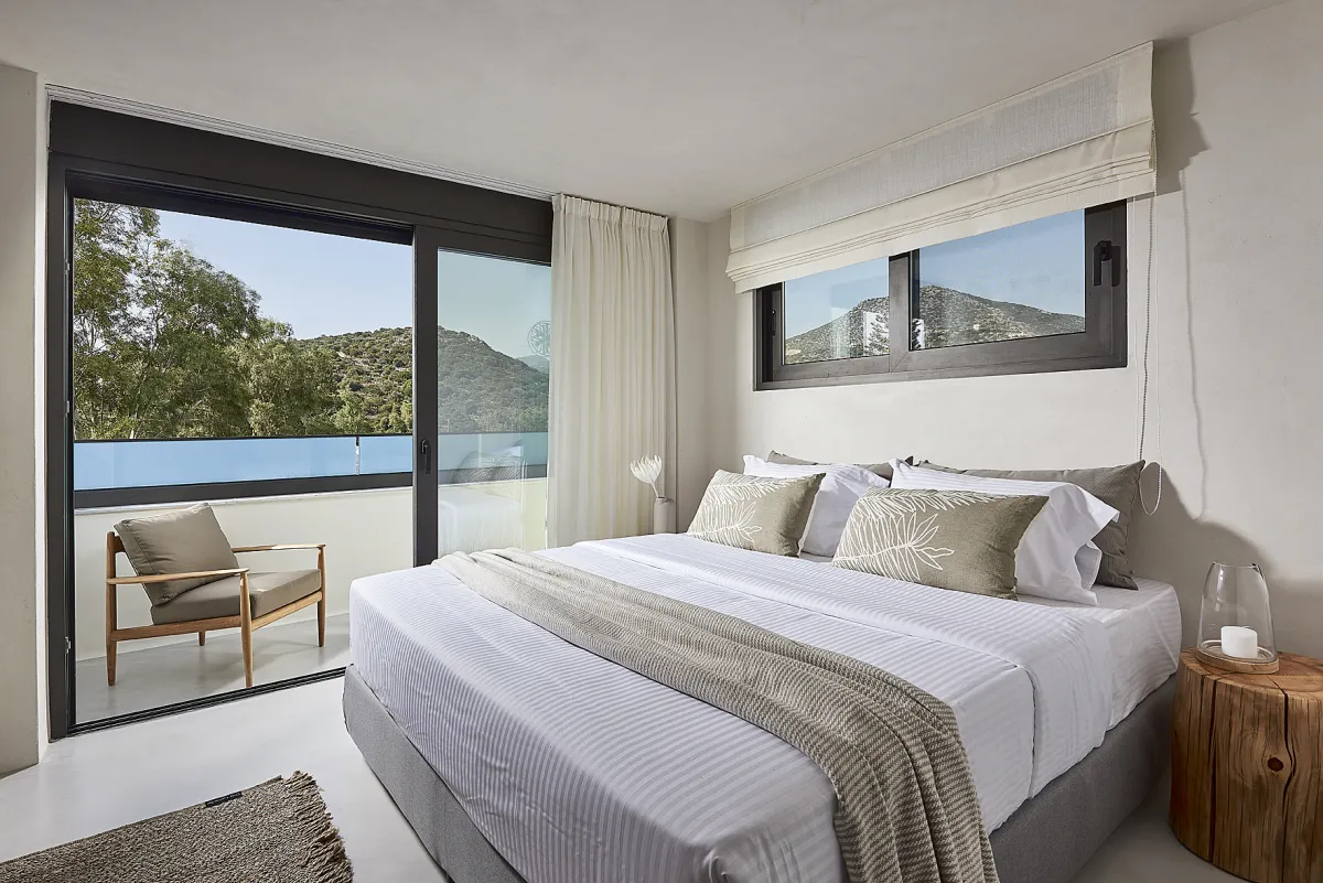 White Sand Villa is a newly built luxury beach villa with a modern design and contemporary amenities that are perfectly combined with the bohemian spirit. This beachfront hideaway is a sophisticated home by the beach to rent for summer holidays that guarantees utmost privacy and harmony to which guests become addicted. For those who seek high degree of luxury and comfort directly on the sandy beach of Almyros, White Sand Villa is second to none. With three bedrooms that open up to panoramic views of the surrounding area and sea including three luxury en-suite bathrooms and an outstanding living space with unique furnishings, plus a fully equipped kitchen, this holiday villa indoors is inspired by the bohemian spirit and it shows in the little details. Outside, a luxurious living area with private infinity swimming pool and outdoor Jacuzzi that overlooks the sea surrounded by lush landscape and complete privacy, embodies everything anyone could ever ask for. Once you get to the White Sand Villa, a real detox from the outside world is offered for the honeymoon lovebirs, or for a family or group of friends that can enjoy balmy summer evenings dining alfresco. And when you feel like going out, the iconic Agios Nikolaos town and sprawling seaside Ammoudara, as well as Elounda resort, are a short drive away. * White Sand Villa is part of The Sand Villas, where both properties can be rented as one, accommodating up to 10 guests, perfect for couples, families and group of friends.