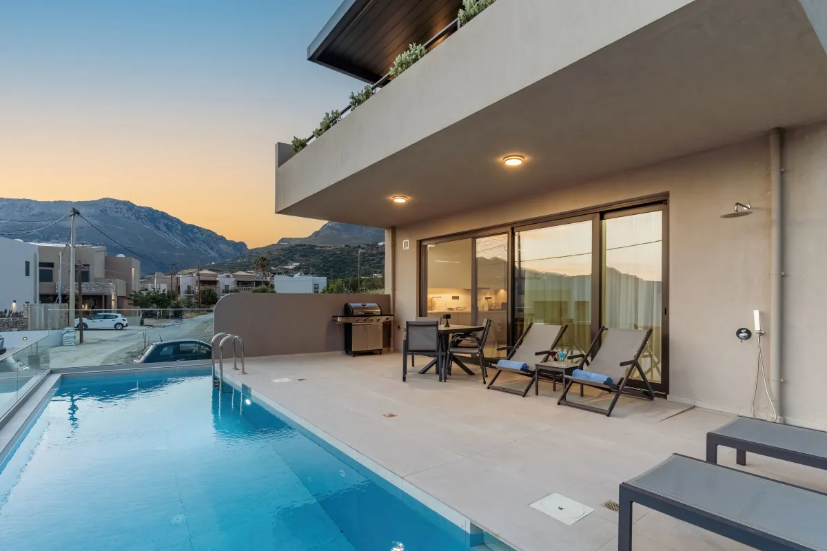 Anemoni Villa in Plakias, Crete, offers stylish accommodation with a private pool, stunning sea views, and modern amenities – just 100 metres from the beach.