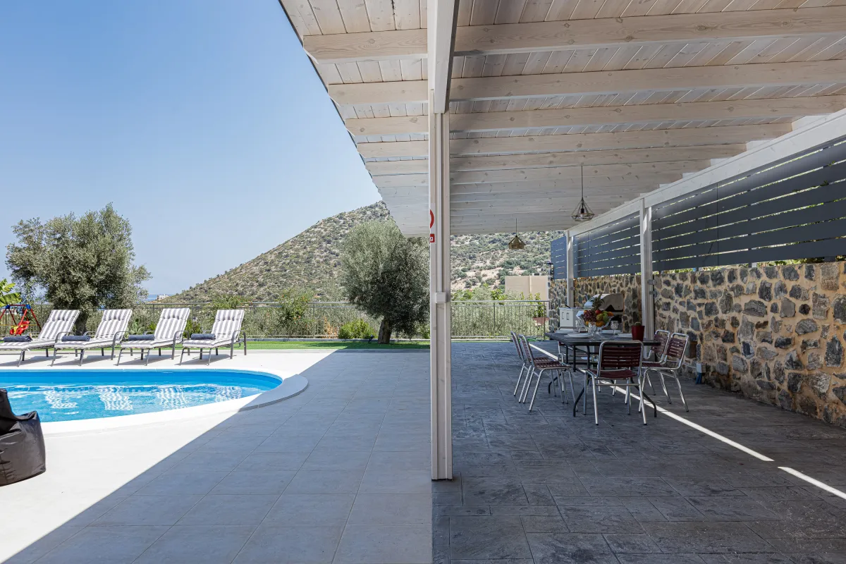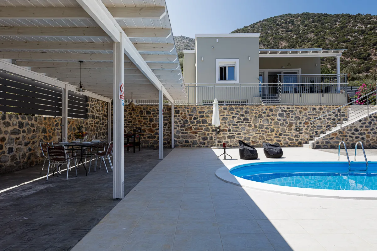 We received the news that we could move into the house two hours early, which made us very happy. Upon arrival, we were warmly greeted by Stephanos. He had already put cold drinks in the fridge for us. We were thrilled by the view as well as the beautiful pool with its well-kept garden. We could contact Stephanos at any time with any requests or questions. The interior was also very nice, but of c... more