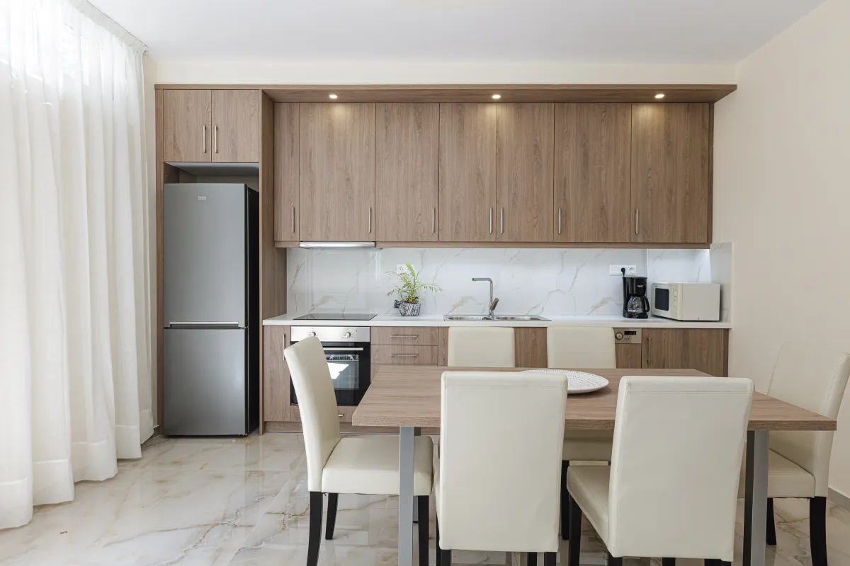 Villa Salmostro is equipped with a trendy, modern kitchen with an oven, microwave, dishwasher, refrigerator, and freezer, as well as a coffee machine, toaster, and kettle. Additionally, there is a mixer, blender, water filter, juicer, and egg machine provided for visitors’ convenience. There is also an enticing dining area with ample seating, shielded by a large pergola.