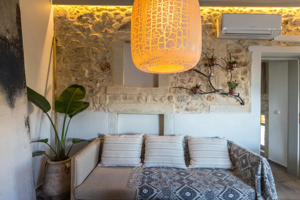 Daphne Villa is an old castle house offering a glimpse into the historical background f the island, perfect for experiencing the cultural side of Crete enjoying luxury comfort, attention to detail items and airy atmosphere. It has been recently upgraded with respect to its historical background boasting a private terrace, a private heated pool and personally handpicked furniture. Located right at heart of the historical centre, it puts you within your arms reach of all of the city's offerings, the attractive medieval sites and the vibrant life of a modern city. It offers comfortable accommodation for up to 4 people in a quite minimalistic scenery, while the highlight of the villa is the outdoor lounge sitting area, as well as the outdoor heated pool, found nowhere else in the preserved Rethymno Old Town.