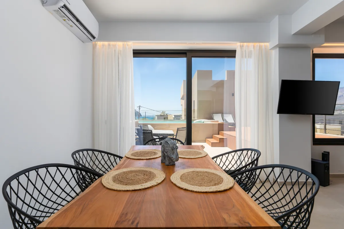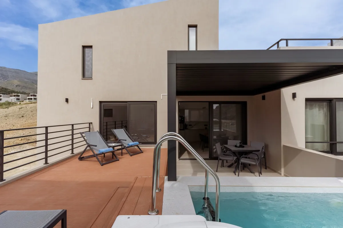 Dandelion Villa in Plakias, Crete, offers stylish and comfortable accommodations, featuring a private pool, an in-house gym, and breathtaking views — all just 100 metres from Paligremnos Beach.