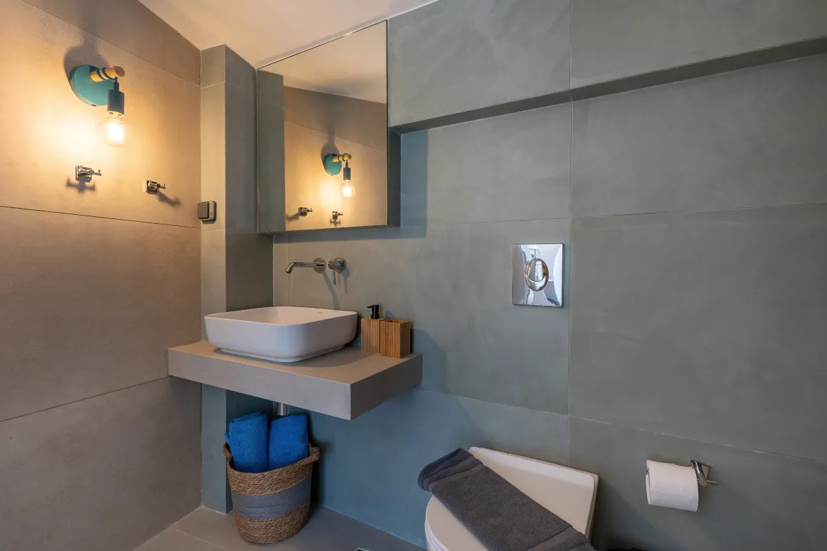 Outside, the villa boasts a private pool perfect for cooling off, plus comfortable sunbeds, an outdoor shower, and a shaded seating area where you can enjoy your morning coffee or an evening glass of wine. The property also includes garage parking for one car and space for four more on the road.