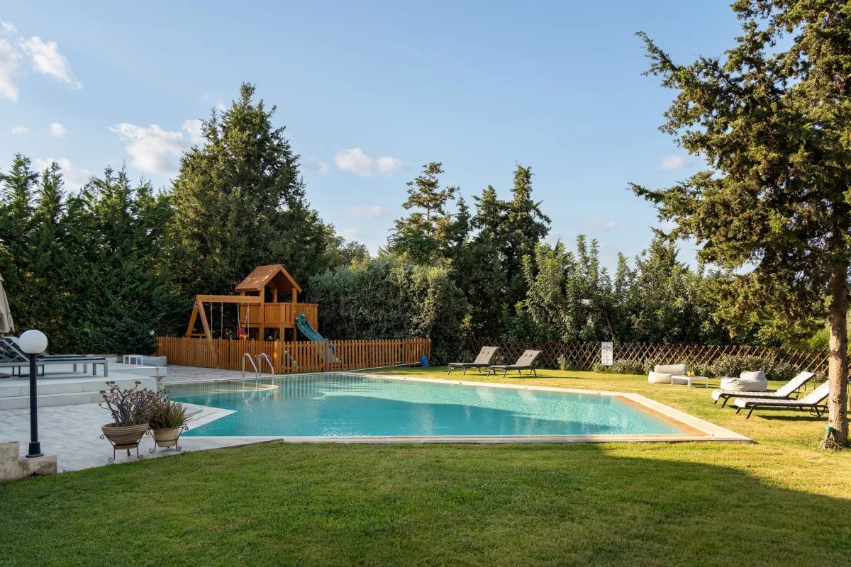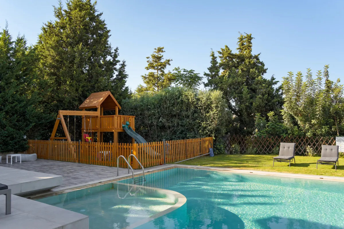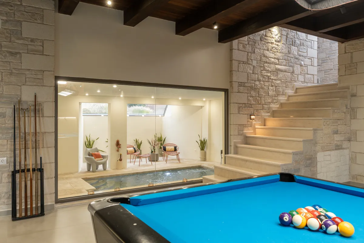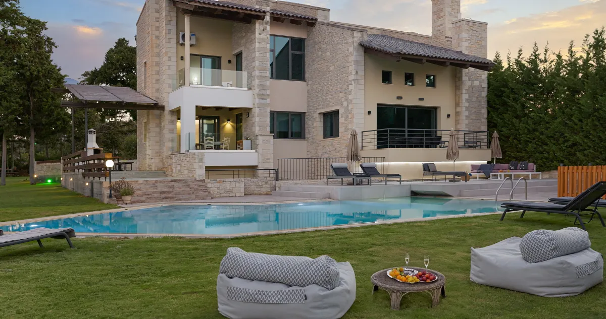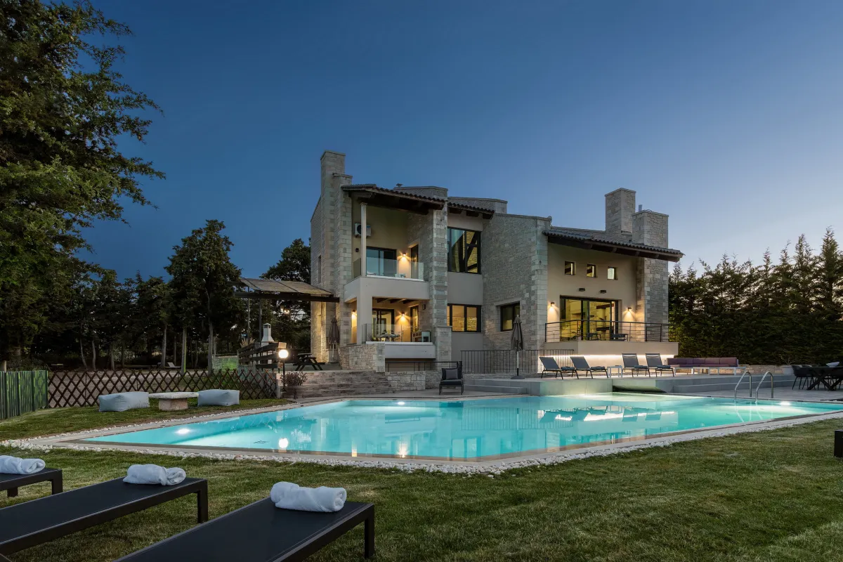 It was an all-around wonderful stay. The house is even more beautiful than the pictures show. We had six children aged 13-16 with us, and they enjoyed every moment in and around the house. The soccer field, the pool (indoor and outdoor), the PlayStation, and the pool table made the week fly by. The best part, however, was the very warm welcome from Nikos and Maria's team, who conjured up a wonderf... more