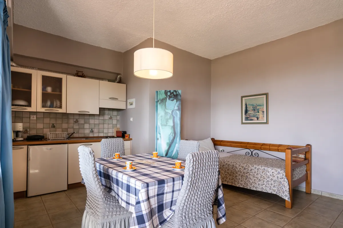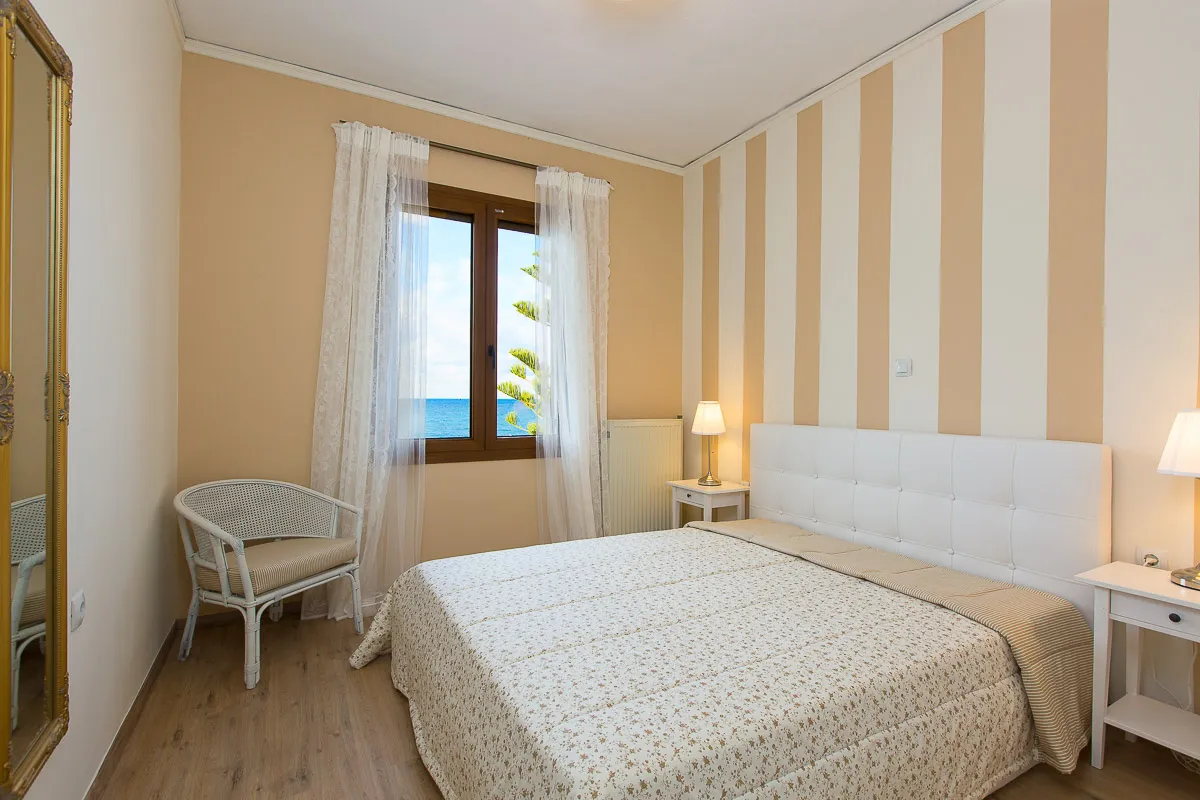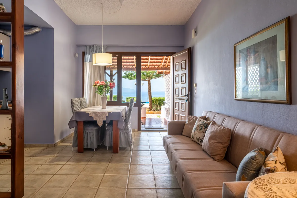 Petros was always easy to reach and immediately addressed any problems that arose. The apartments aren't as bright as they look in the photos, and the main road that runs past the house is very busy. But overall, as a large family, we had a great time with the great pool, direct sea access, and magnificent view from the terrace. The kitchen is well-equipped.