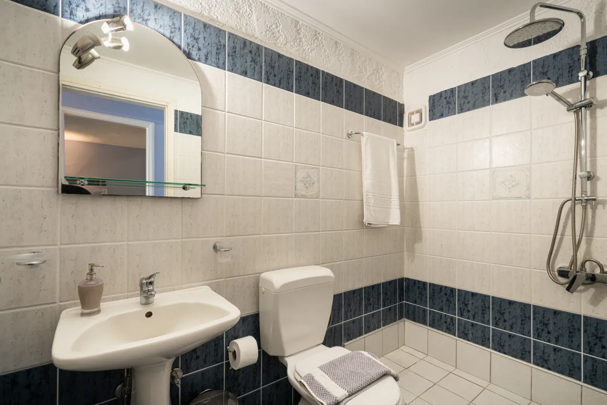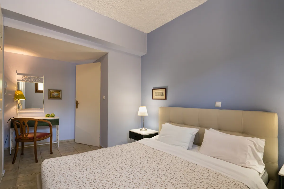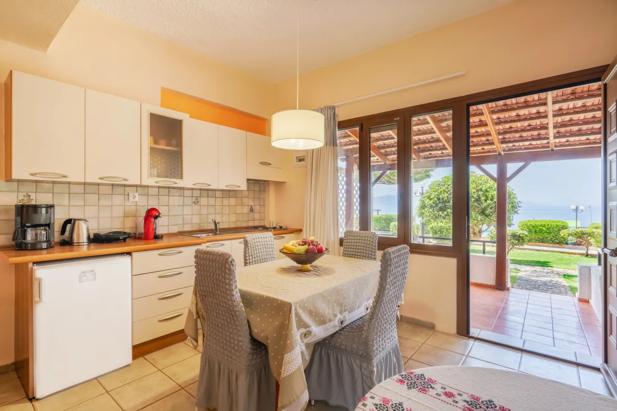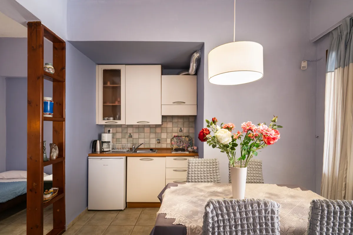 Petros was always easy to reach and immediately addressed any problems that arose. The apartments aren't as bright as they look in the photos, and the main road that runs past the house is very busy. But overall, as a large family, we had a great time with the great pool, direct sea access, and magnificent view from the terrace. The kitchen is well-equipped.