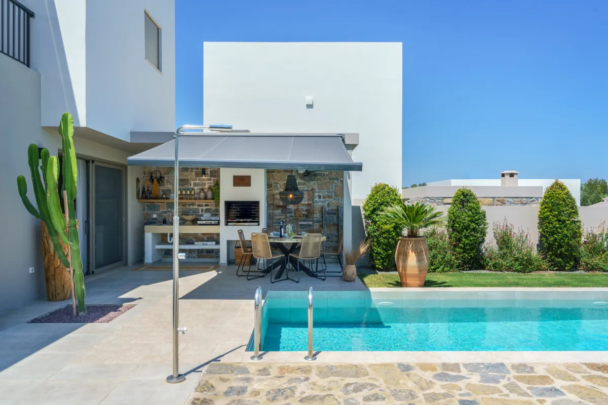 Amazing place, spacious clean and the outdoor is just fabulous with an amazing pool and also a bbq . It’s a 10 minute drive to the center of rethymno. Small supermarket pharmacy and butchery 3 minutes away. Will definitely book again when I visit Crete !!!!