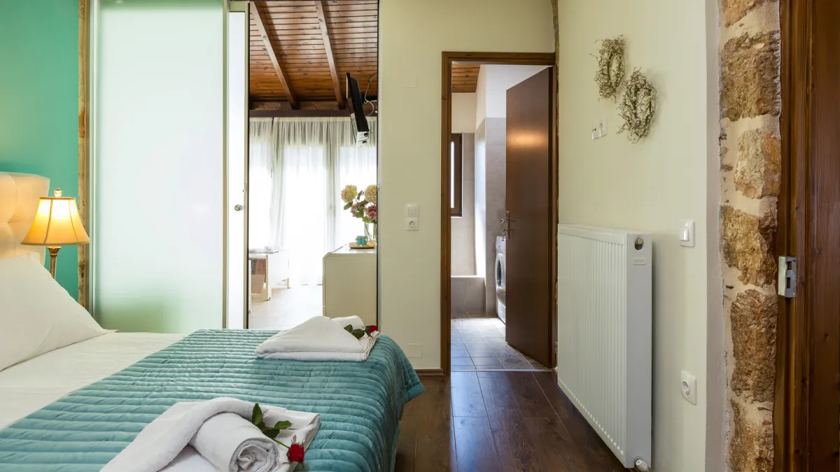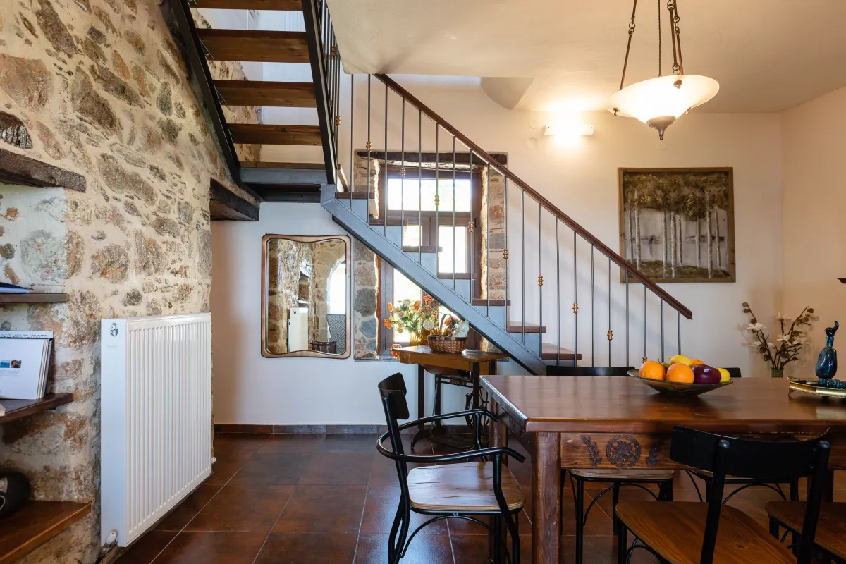 Villa Penelope Home sleeps up to 10 guests across five well-planned bedrooms, ideal for families travelling together. There are two family rooms with double beds, one on the first floor and one on the second floor. Each connects internally to bedrooms with single beds, allowing parents and children to stay close while retaining comfort and flexibility.