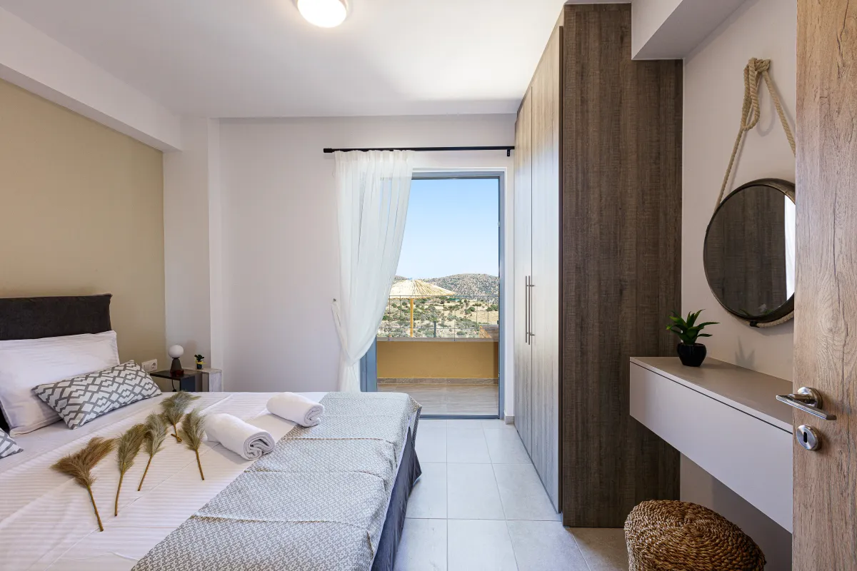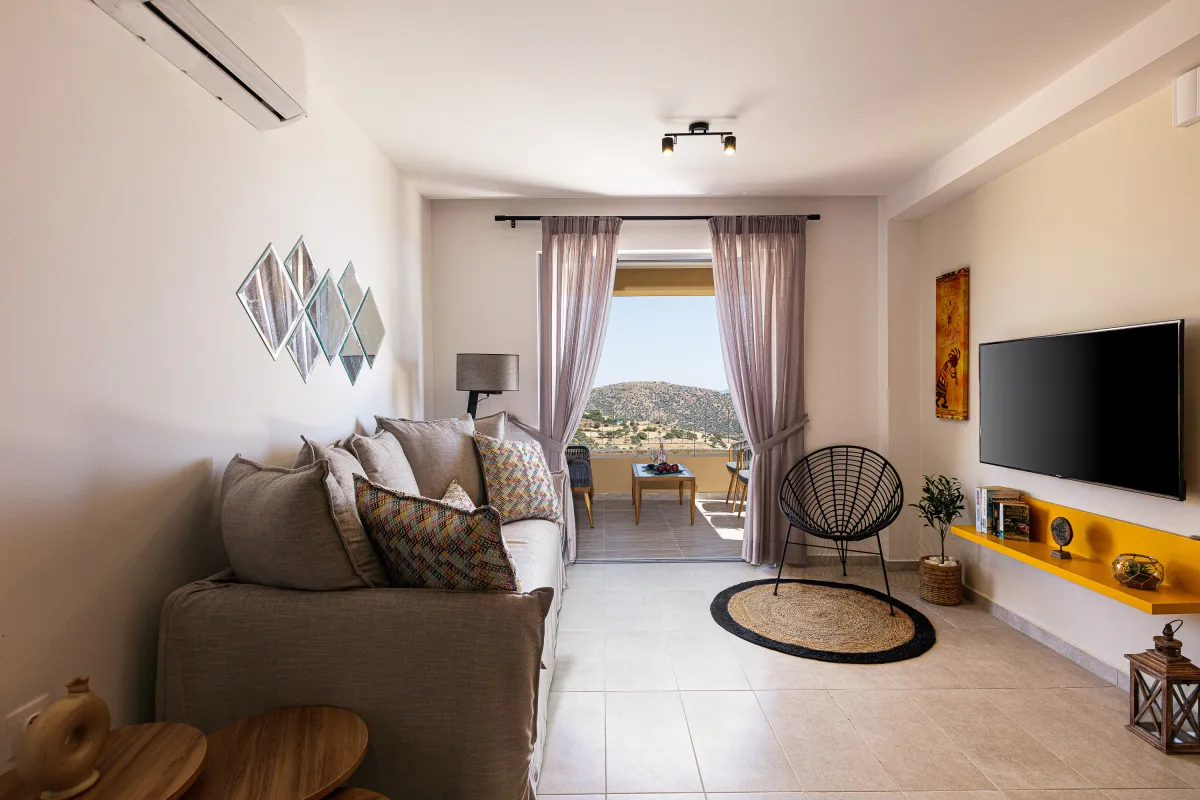 Villa Μariva is situated between Akoumia village and Triopetra coasts, overlooking, both the fishing village and the out-of-this-world sandy and rocky coasts stretching for some meters next to it. The name Triopetra (derived from Tris Petres) meaning “3 rocks”, where at the edge of the peninsula, in the sea, three majestic rocks rise. Attractive villages and mysterious prehistoric sites all combine to make the location of the villa simply sparkle with calm and charm that guests won’t ever want to leave. The vast sand dunes of Aghios Pavlos and Pachia Ammos are the next best beaches to visit, as well as the famous Preveli palm trees beach, where a river emerges from a gorge into the sea. Villa Zoe -Triopetra is 28 km away from the city of Rethymnon and the nearest airport is Chania International Airport, 59 km away.