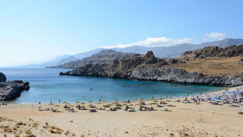 As you drive down the mountains and through gorges mountain passes enveloping Plakias, you can see the Plakias beach and the scenic bay that sits on the Libyan Sea. Olive groves dot the valleys and slopes, adding their characteristic colors to the Mediterranean setting.