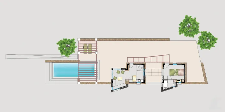 40 mt2 area 1 bathroom 1 bedroom 4 sleeps View villa