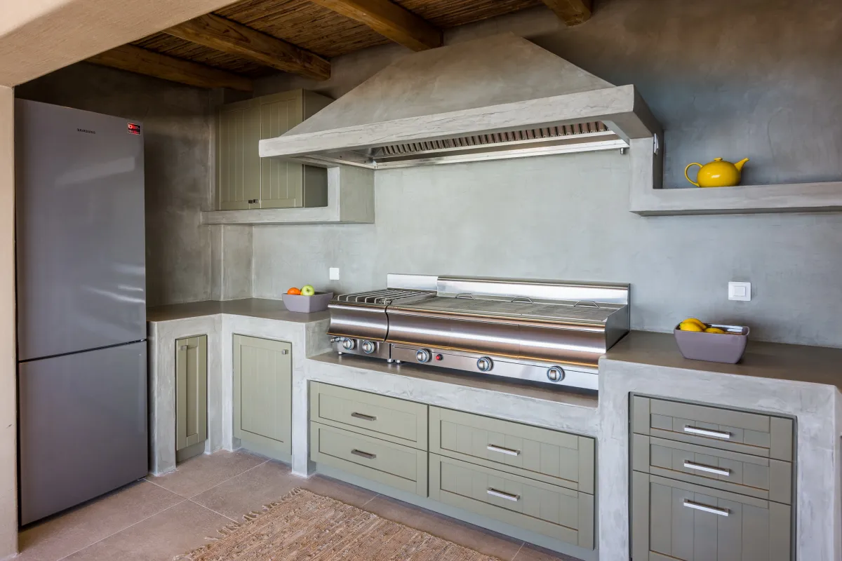 Das Beach House Arvi West verfügt über insgesamt 4 Küchen, die schön angelegt und mit allem Komfort ausgestattet sind, darunter ein 6-Platten-Herd, ein Backofen, ein Geschirrspüler, ein Gefrierschrank, ein Kühlschrank, ein Toaster, eine Filterkaffeemaschine und Nespresso. Es gibt 3 Speisesäle in der Villa, elegant eingerichtet mit reichlich Sitzgelegenheiten für die Gäste und einem geräumigen, gut beleuchteten Design.