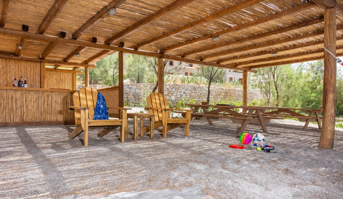 Das Beach House Arvi verfügt über einen weitläufigen und luxuriösen Unterhaltungsbereich im Freien mit Blick auf das Meer. Zu seinen Merkmalen gehören ein großer Swimmingpool, Sitzgelegenheiten im Freien, ein Essbereich und Grillmöglichkeiten. Es gibt auch eine Tischtennisplatte, einen Kinderspielplatz, eine Außendusche sowie einen privaten Parkplatz für die Gäste.