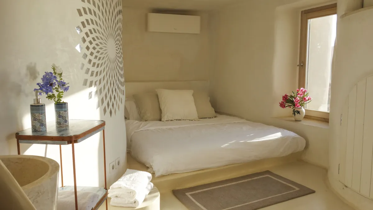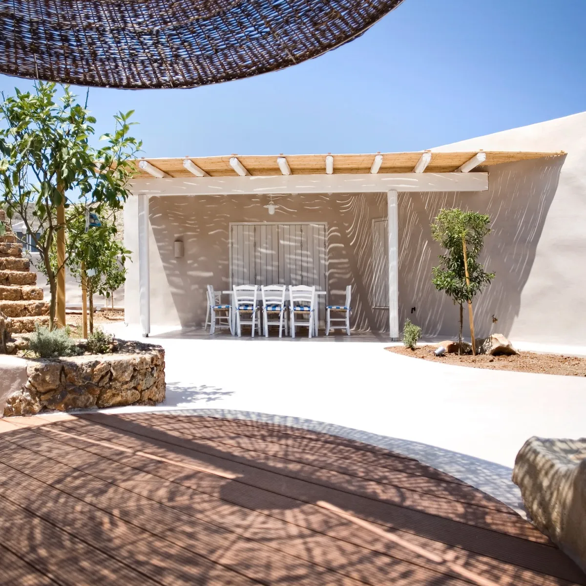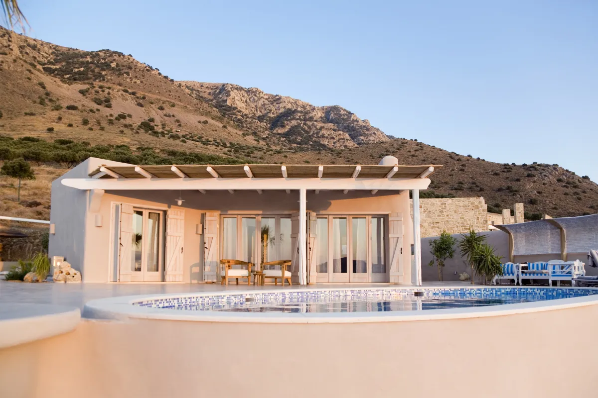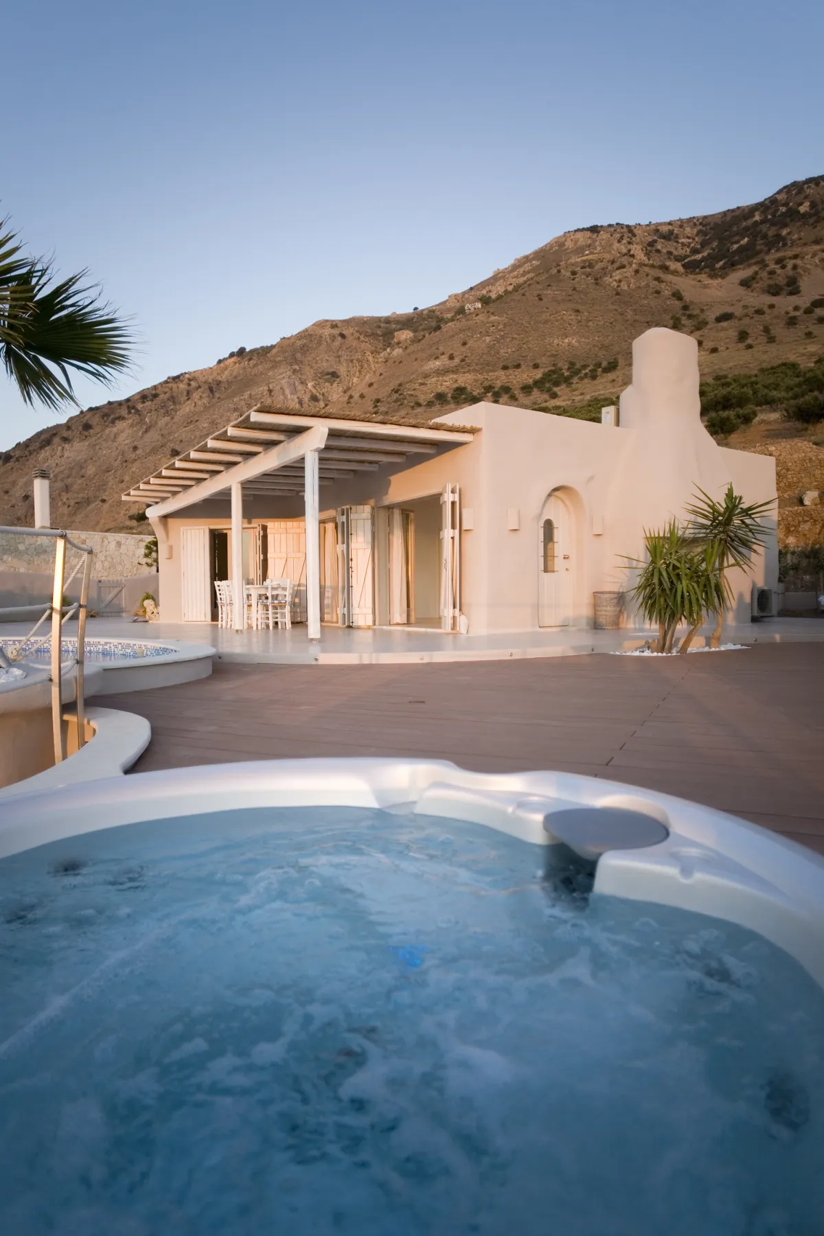 Villa Achilleas est une luxueuse villa de vacances de plain-pied idéale pour les amoureux de la Grèce qui apprécient l'esthétique de l'île qui est un style simple mais audacieux, un concept qui définit l'ambiance de la maison à l'intérieur comme à l'extérieur. Construite avec des formes organiques et des espaces extérieurs incroyablement luxuriants face au paysage sensationnel de la mer et des îles, cette villa de vacances est l'endroit idéal pour embrasser la mer, le soleil et la culture de Crète. La Villa Achilleas ressemble à une perle qui émerge de la mer d'un bleu profond, s'inspirant de l'extérieur, où la pièce maîtresse est la piscine, mais le paysage est le véritable protagoniste du cadre. Une belle plage pour nager se trouve à seulement 200 mètres, puis venez dans votre jacuzzi pour admirer de magnifiques vues sur la mer Égée alors que le soleil se couche lentement à l'ouest. De cet endroit, vous pouvez profiter d'un dîner en plein air le soir ou de votre boisson avec vos proches avec l'odeur de la brise marine. En entrant dans la Villa Achilleas, un mot qui vient à l'esprit est la pureté, exposée par l'essence nue des lignes, des formes et des objets contre cette lumière aveuglante. Le salon principal devient une partie de la terrasse et un espace cuisine entièrement équipé fera ressortir le chef en vous. Avec tout le confort, propre et sophistiqué, les chambres sont conçues avec goût, toutes de taille king, et deux ont leur propre salle de bains. La chambre annexe est située dans une pièce troglodyte de style cycladique qui est séparée de la villa principale. La Villa Achilleas est de style authentique dans le style grec traditionnel de l'île, qui constitue un havre de sérénité et de détente qui profite au maximum du temps et des vues extérieurs magnifiques. La terrasse, le salon et le jardin sont soigneusement conçus pour offrir de multiples zones d'ombre pendant la journée lorsque le soleil se déplace autour de la villa. Comme une caractéristique supplémentaire pour votre plaisir, la villa dispose également d'un jacuzzi avec des sièges pour sept, un barbecue à gaz, des hamacs, 2 canoës et 2 VTT.