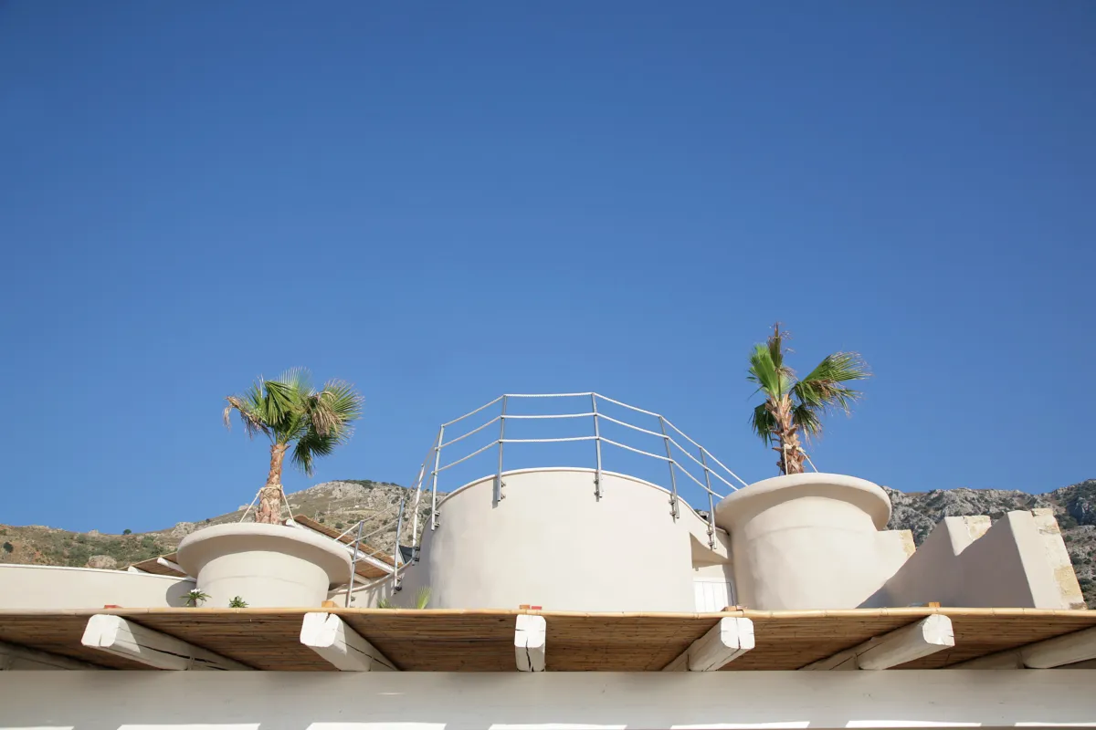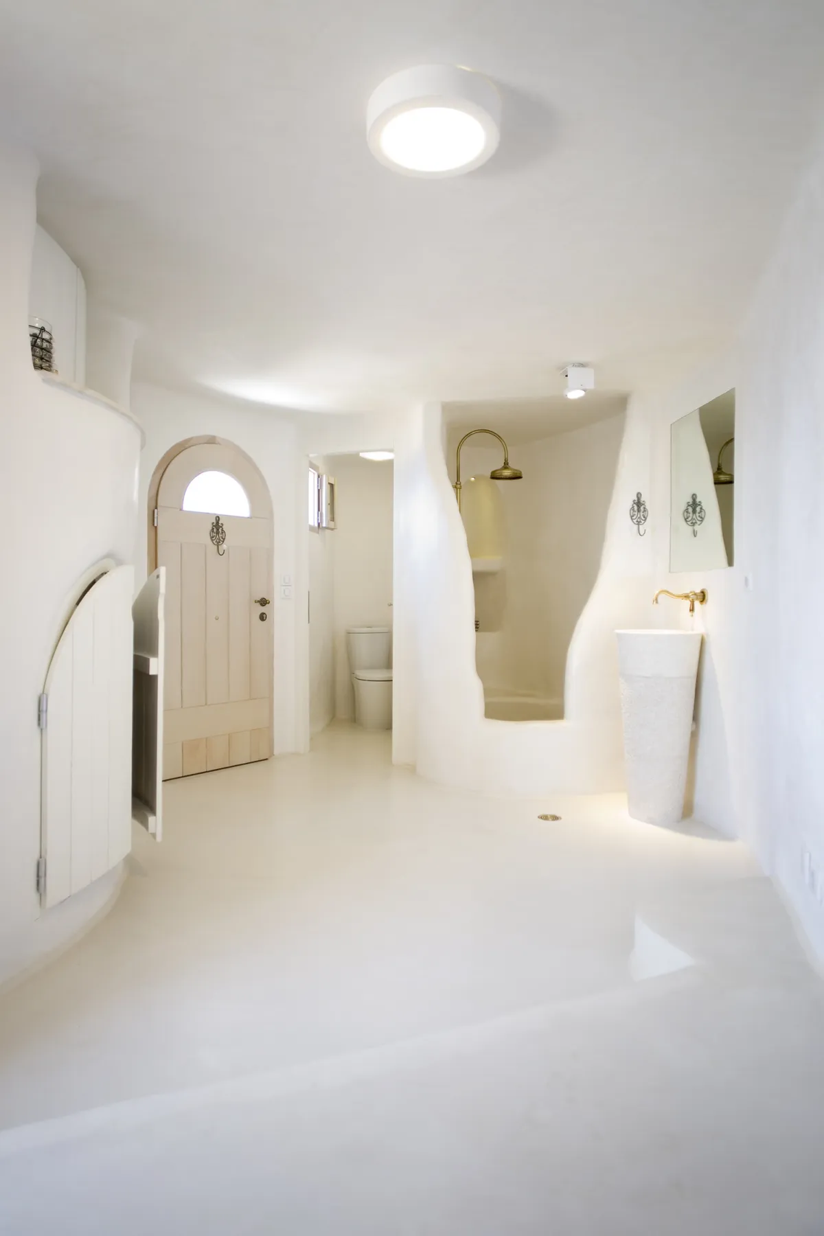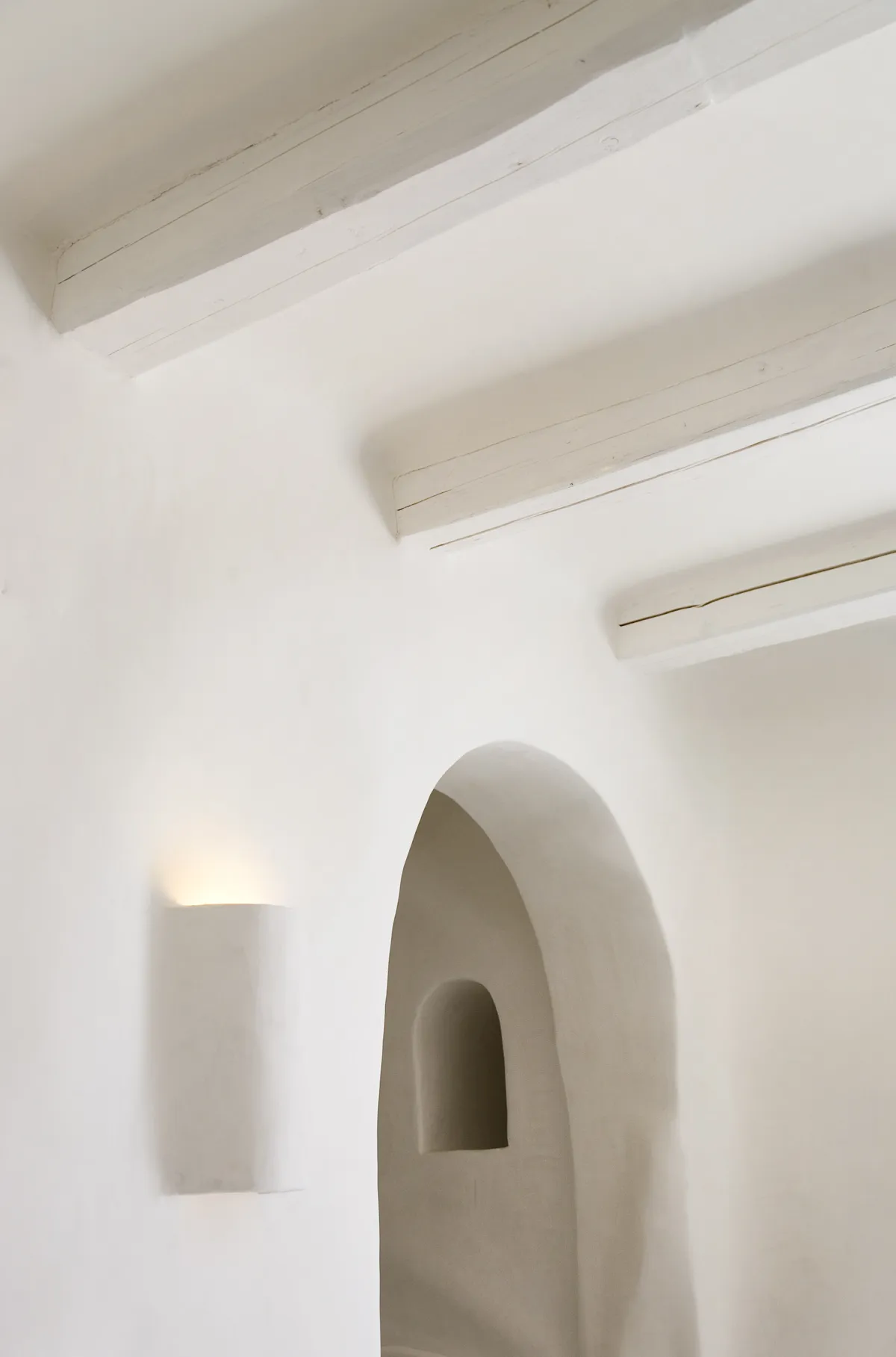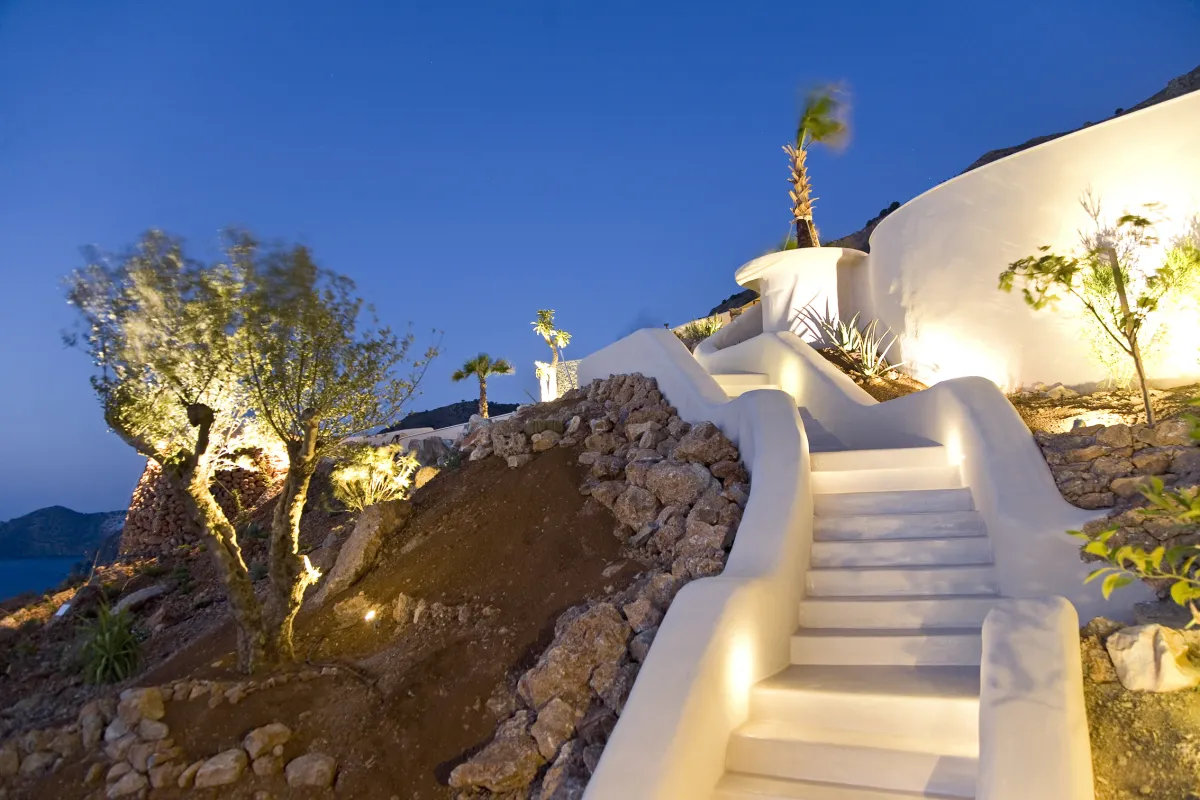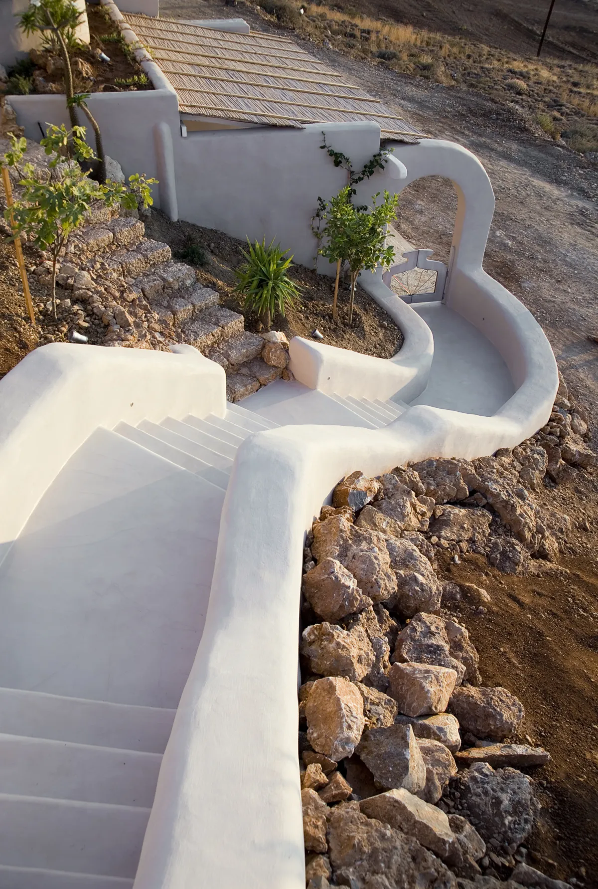 Cette villa d'un blanc immaculé qui repose à 150 mètres au-dessus du niveau de la mer et offre des vues à couper le souffle sur le golfe de Mirabello, est conçue pour donner des sentiments d'équilibre pur et de plaisir esthétique loin des regards indiscrets sur un paysage de montagne aride, avec sa propre piscine privée et jacuzzi, dans le zone exclusive de la Crète orientale.