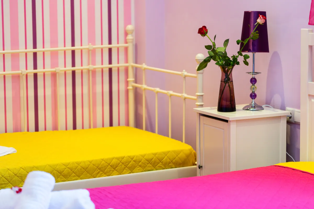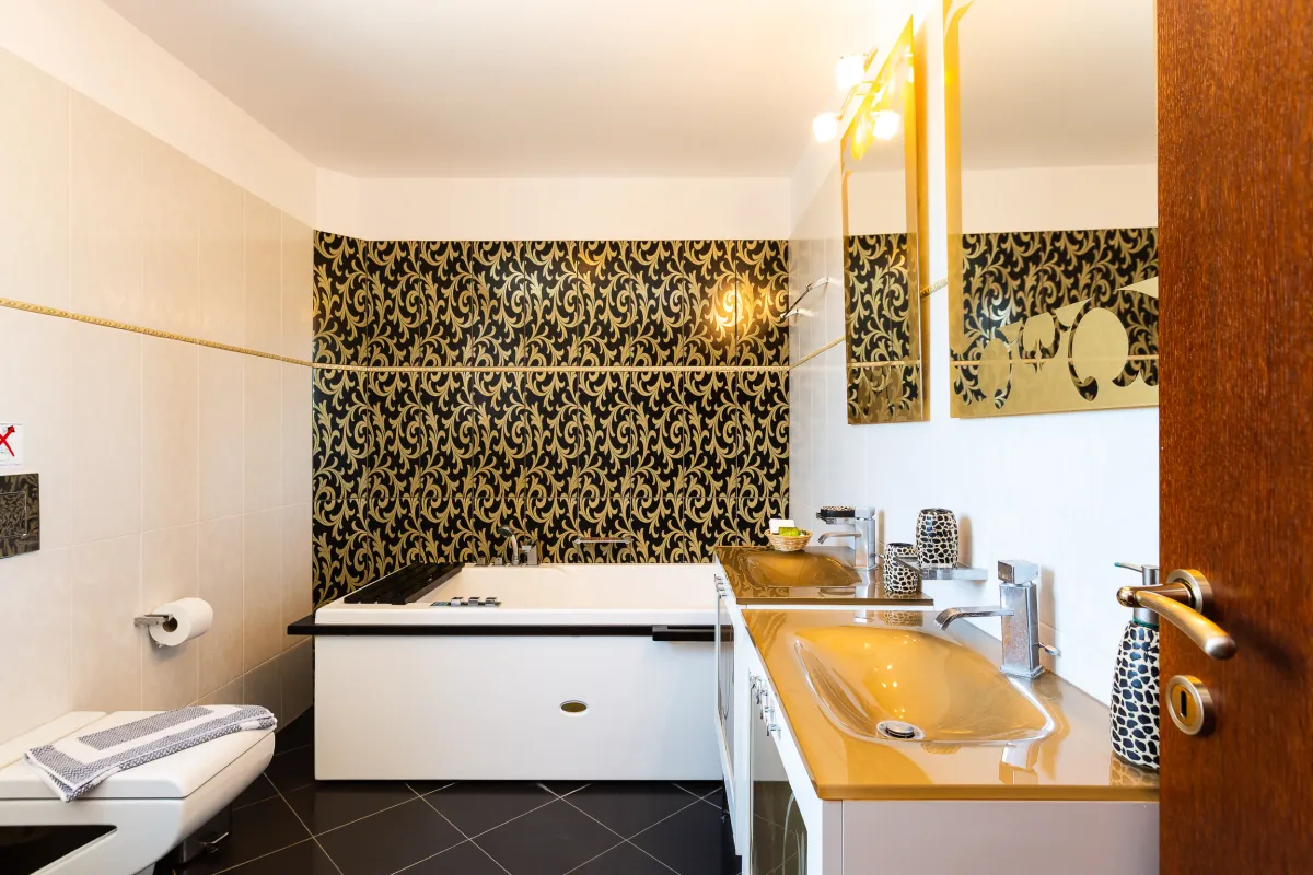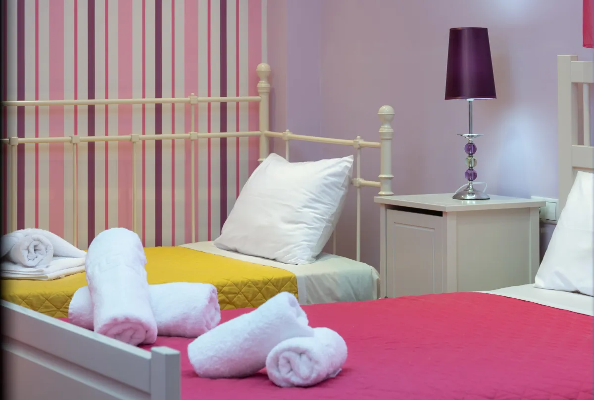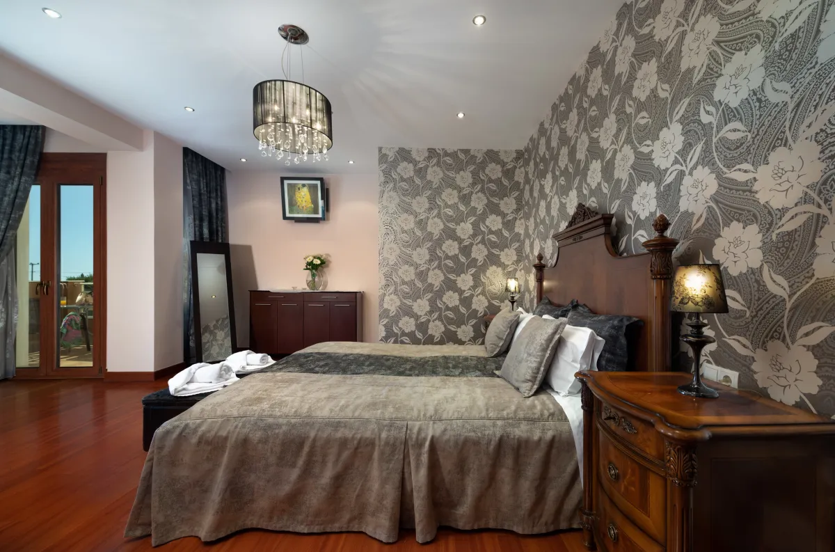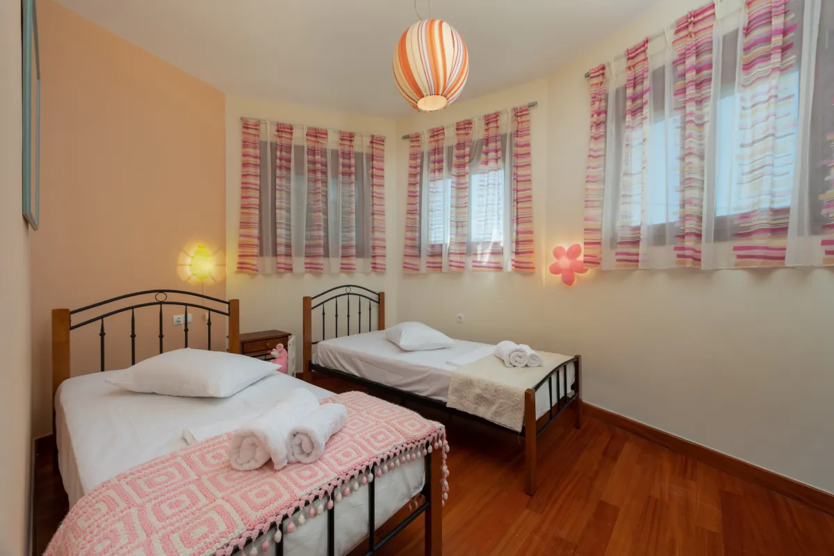 La Villa 4 Seasons dispose de 5 splendides chambres dotées d'un mobilier décadent et de rideaux occultants. Quatre d'entre elles sont situées au premier étage : la chambre principale dispose d'un lit king-size, de la climatisation, d'une armoire, d'une télévision de 32 pouces et d'une salle de bain attenante avec baignoire à jets. L'autre chambre dispose de 2 lits simples et de la climatisation. La troisième chambre a un lit double, un balcon privé, la climatisation, une télévision 40'' et une salle de bain avec douche et la dernière chambre du premier étage a un lit double et un lit simple, la climatisation et une salle de bain avec jets. baignoire. La cinquième chambre est située dans les combles, où se trouvent un lit double inclinable, la climatisation, des balcons privés, une télévision 40'', un coin fitness avec tapis roulant et vélo d'appartement, une kitchenette, un coin salon, un bureau. et salle de bain attenante avec douche. Les salles de bains sont équipées de serviettes, d'un sèche-cheveux et d'articles de toilette gratuits. Un fer et une planche à repasser, un lave-linge et un sèche-linge sont également à votre disposition.
